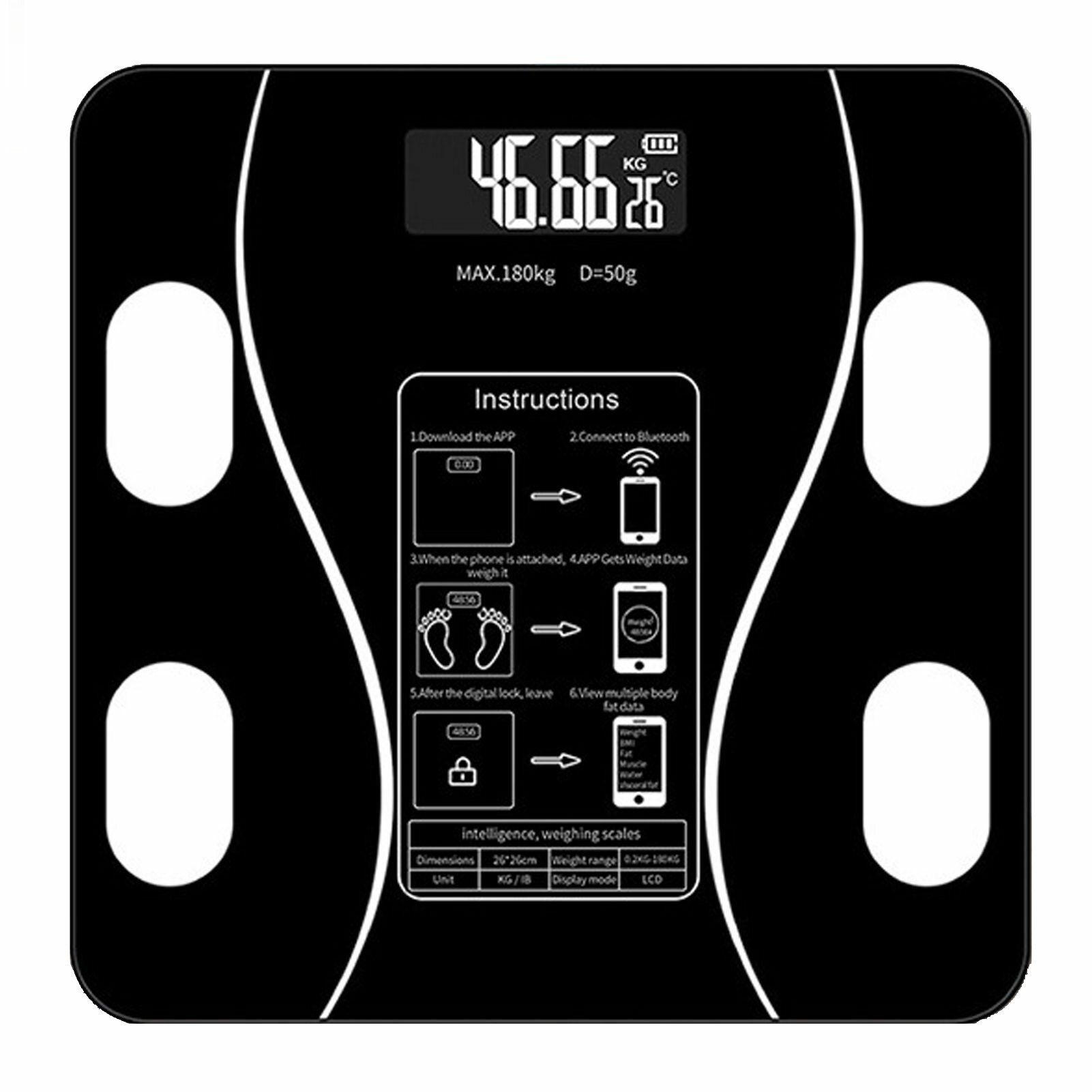 Купить Умные напольные весы с максимальной нагрузкой до 180 кг, черные