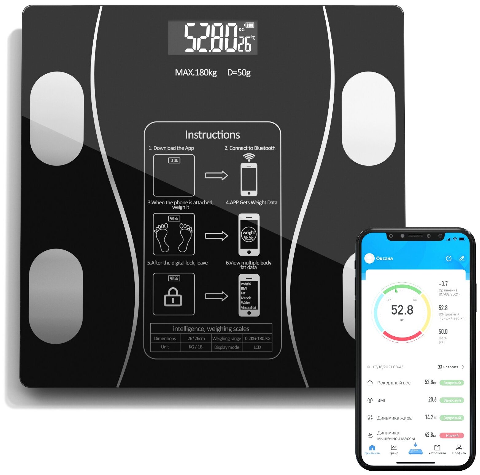 Умные напольные весы с максимальной нагрузкой до 180 кг, черные интересное:
