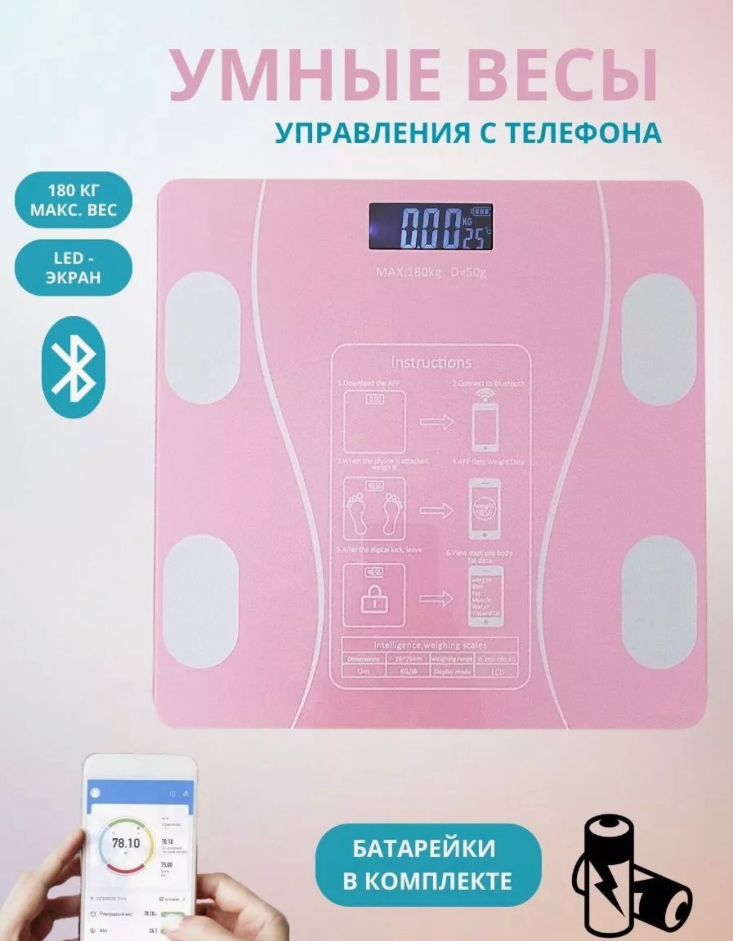 Купить Электронные весы для домашнего использования, с диагностикой, розовые