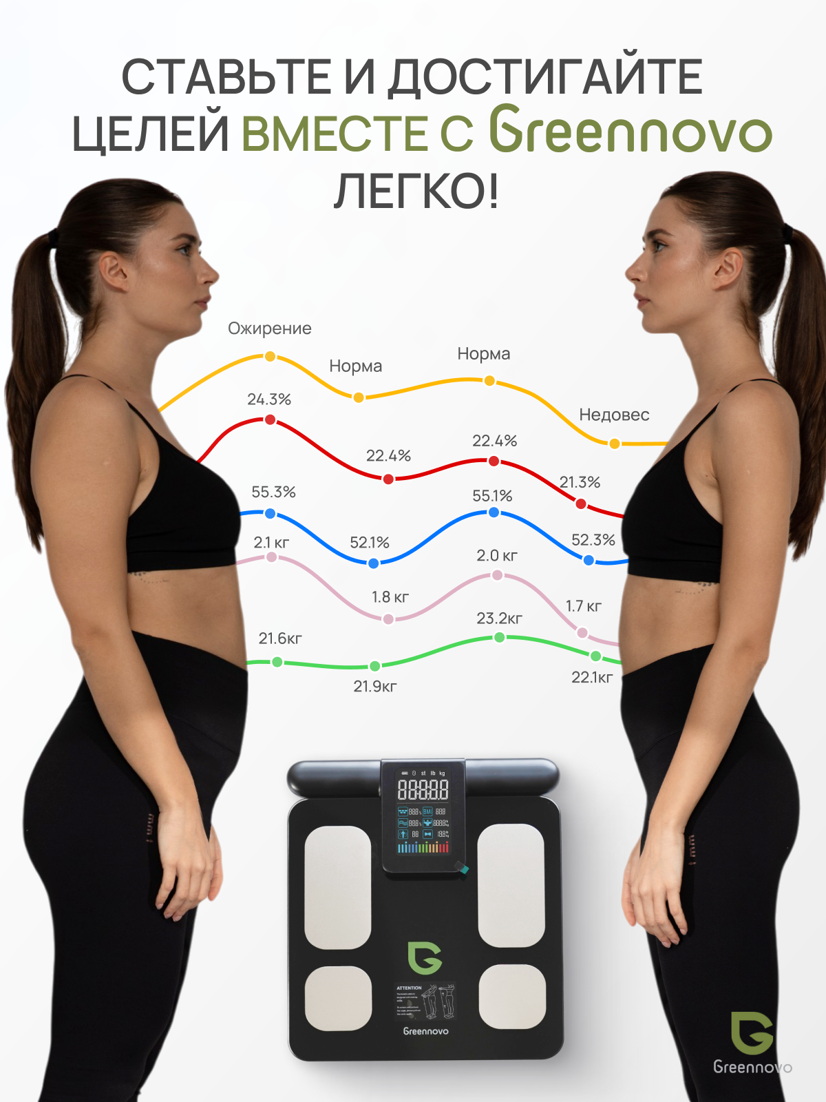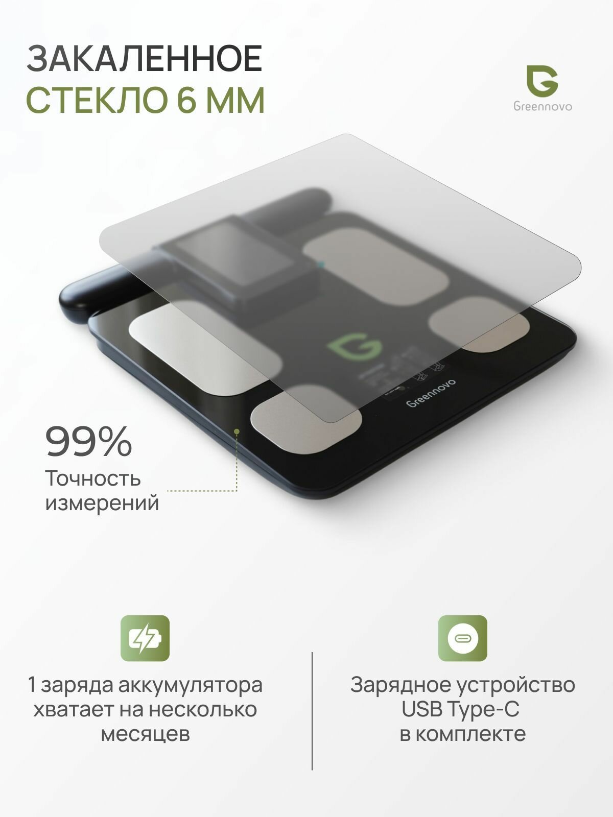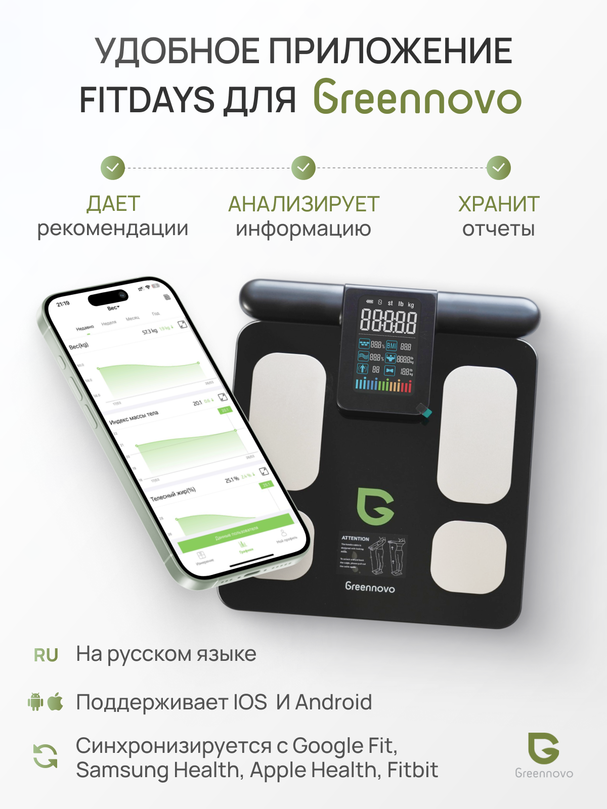 Умные весы GREENNOVO с технологией биоимпедансного анализа BIA / весы с анализатором состава тела интересное: