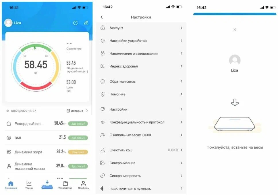 | Дополнительные функции | расчет ИМТ (BMI) |
