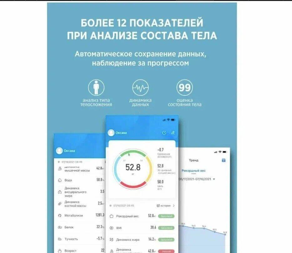 | Дополнительные функции | расчет ИМТ (BMI) |