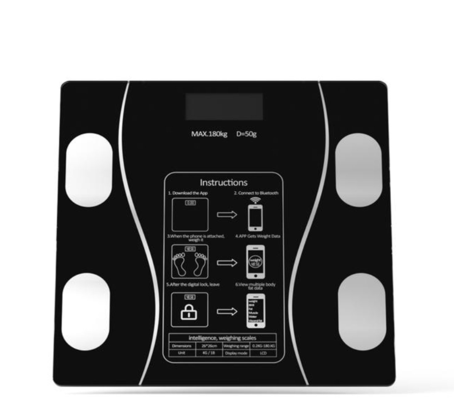 Купить Напольные умные весы, электронные напольные весы c Bluetooth, с функцией измерения биометрии тела, черный, на батарейках