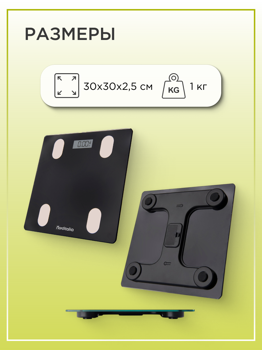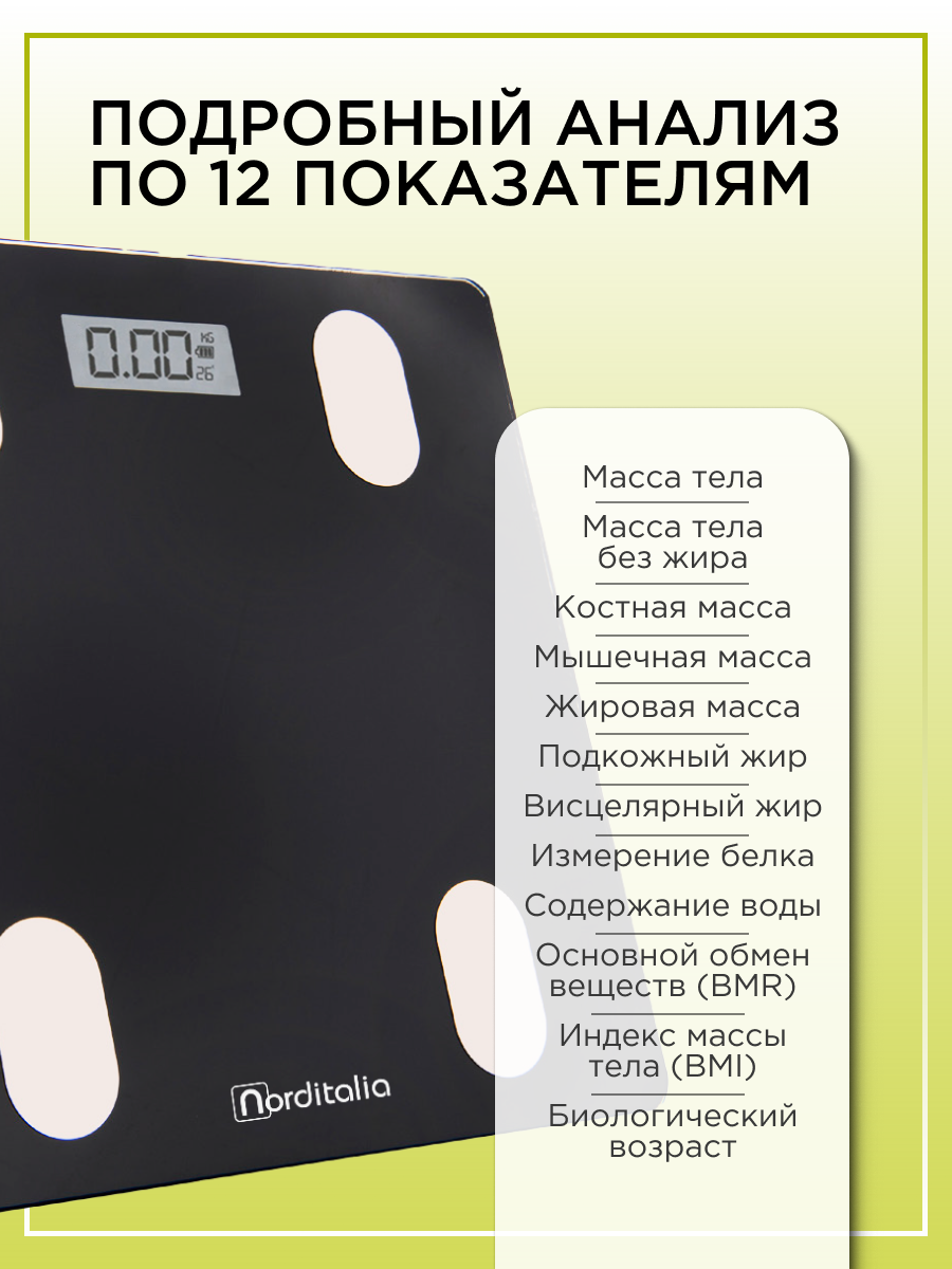 Умные напольные весы Norditalia BI 150: Bluetooth, анализ состава тела, дисплей, закалённое стекло интересное: