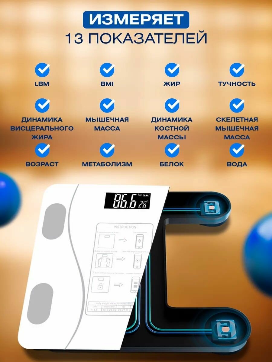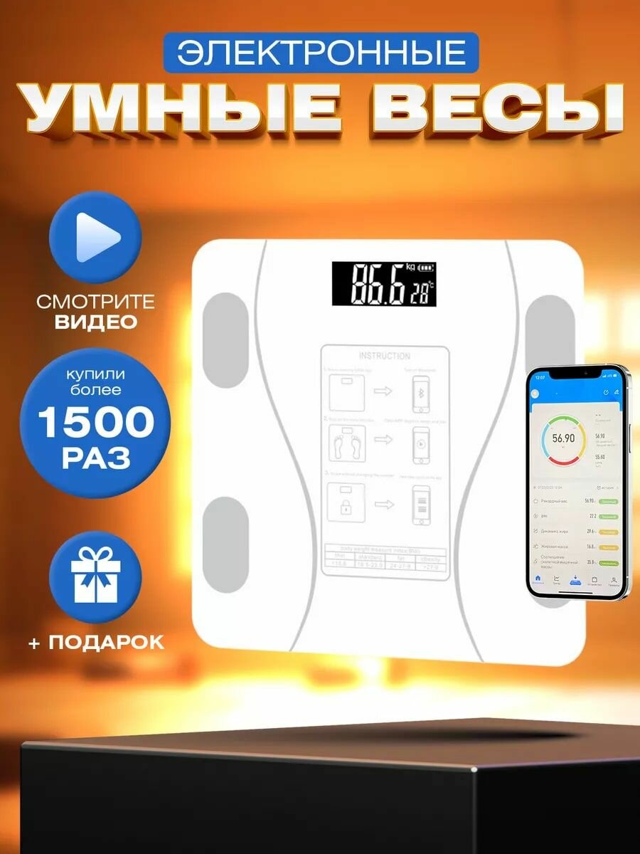 Напольные весы LineHaus LH-7705 DL-450BT 180кг Белые Bluetooth интересное: