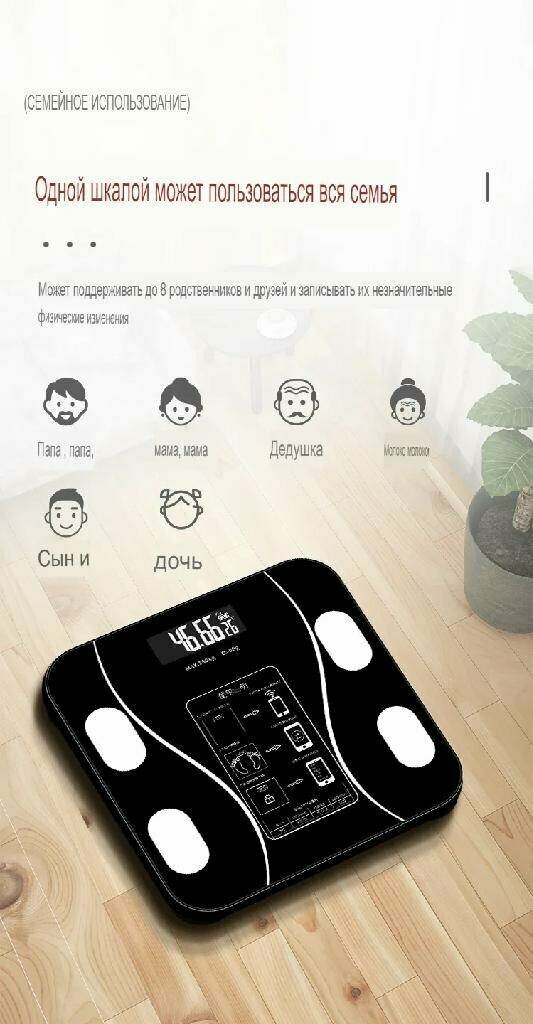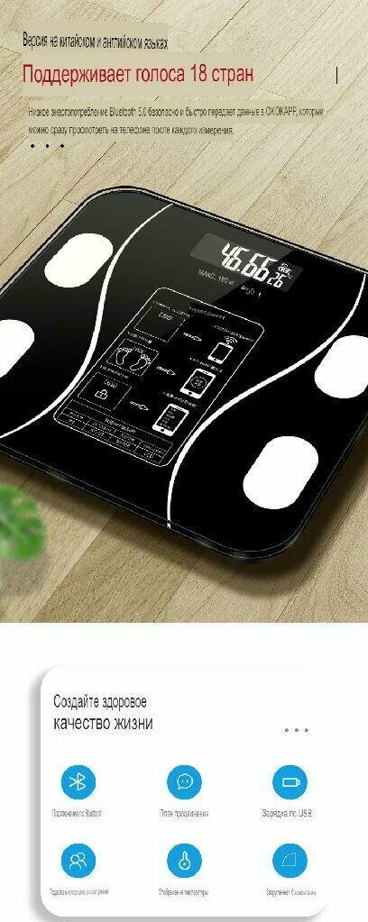 Весы напольные, умные, перезаряжаемые Jiake 9005, макс. 180 кг , цвет белый интересное: