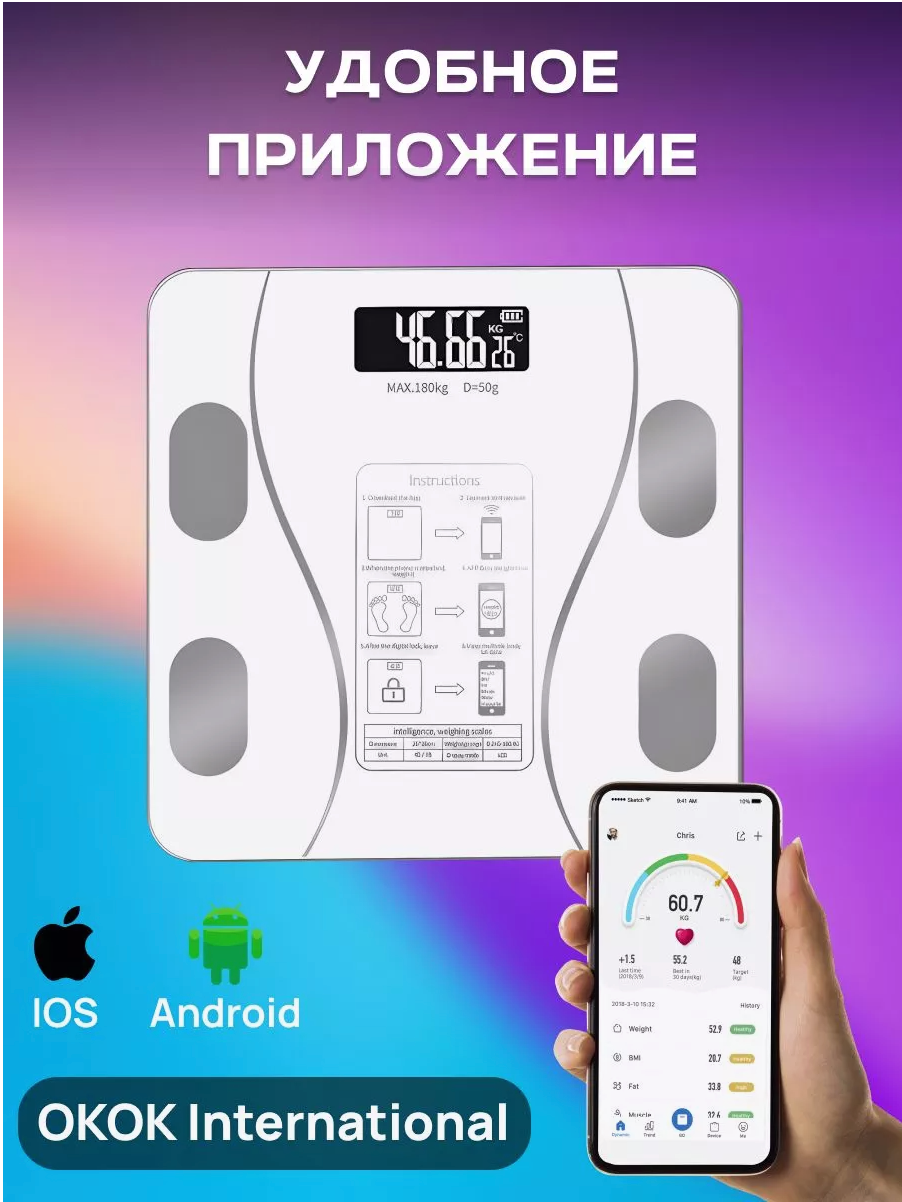 Умные напольные весы с определением доли воды и жировой ткани белые интересное: