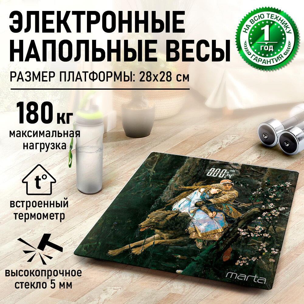 Весы напольные MARTA MT-SC3601 Иван-царевич на Сером Волке сенсор интересное: