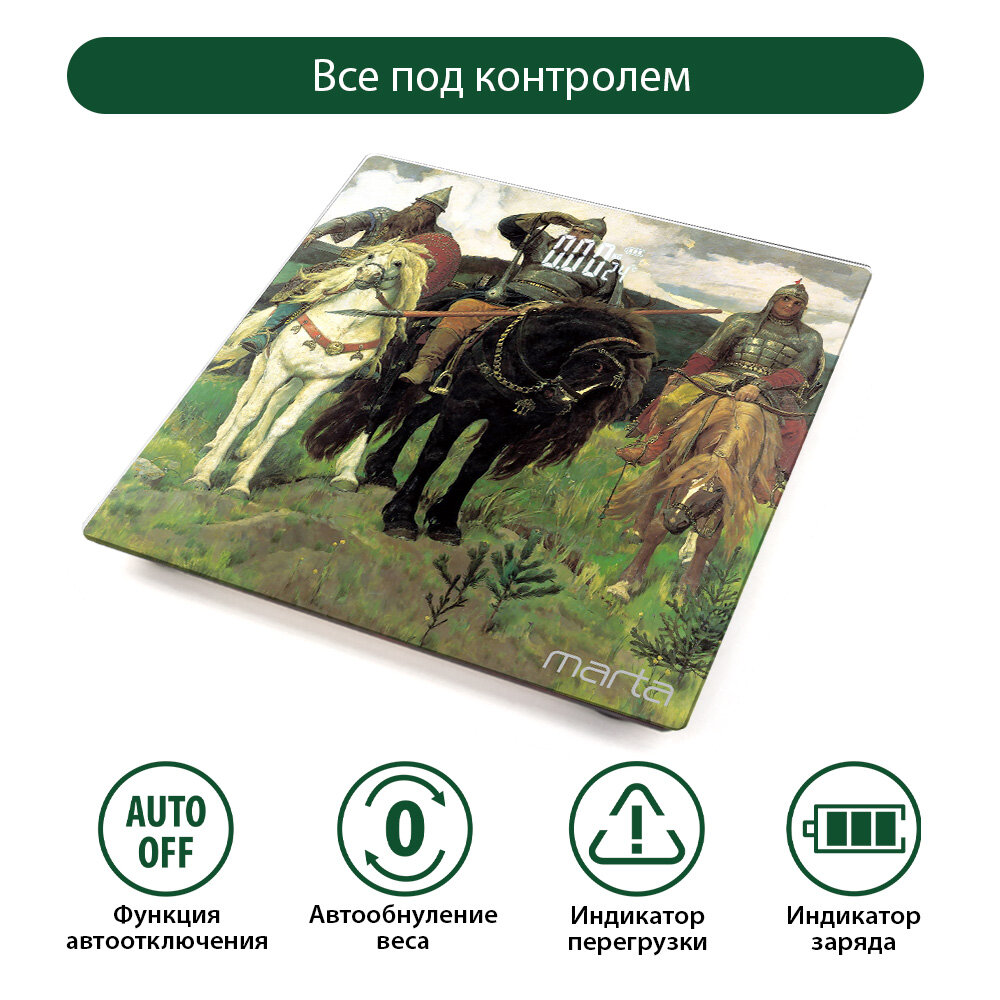 Напольные весы MARTA "Богатыри" MT-SC3601, сенсорные, стекло, до 180кг интересное: