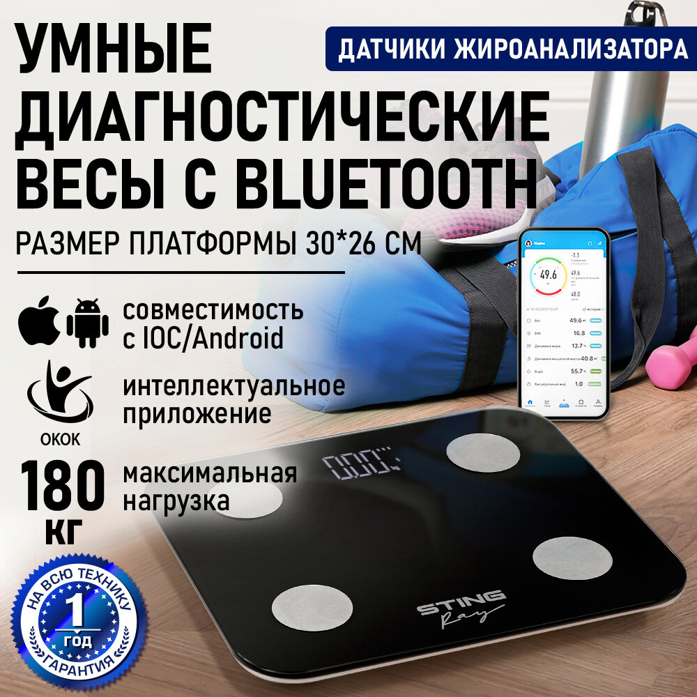 Весы напольные умные STINGRAY ST-SC5003A черный жемчуг диагностические с Bluetooth интересное: