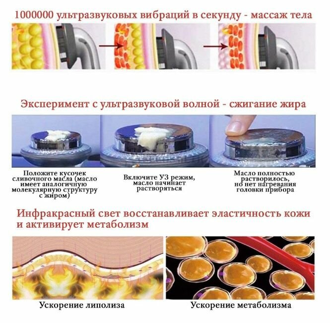 | Принцип работы | ультразвуковая кавитация / хромотерапия |