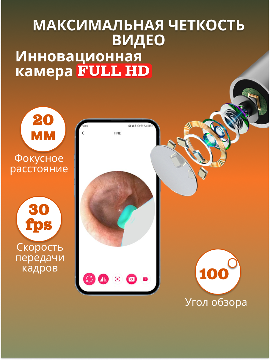 Купить Умная ушная палочка с камерой и фонариком, отоскоп. Набор инструментов для чистки ушей
