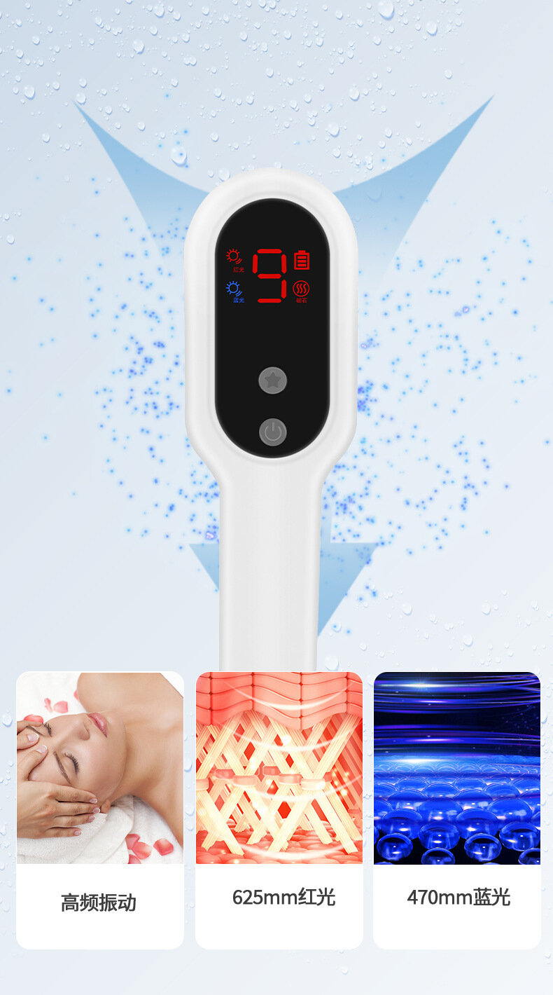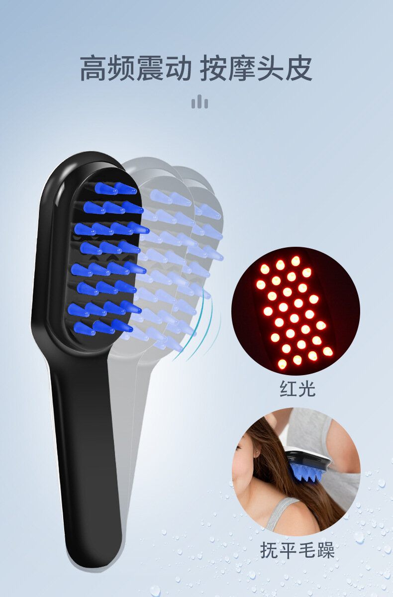Массажная расческа для роста волос, с вибрационным массажем, 9 передач, красный и синий свет