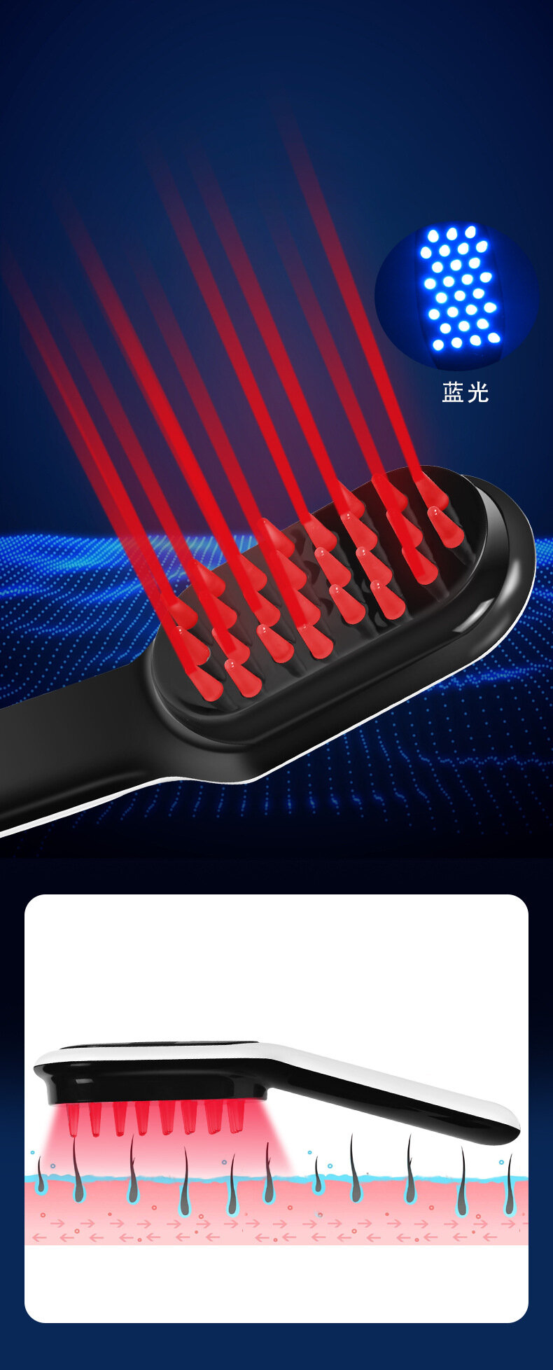 Массажная расческа, для роста волос, с красным и синим светом интересное: