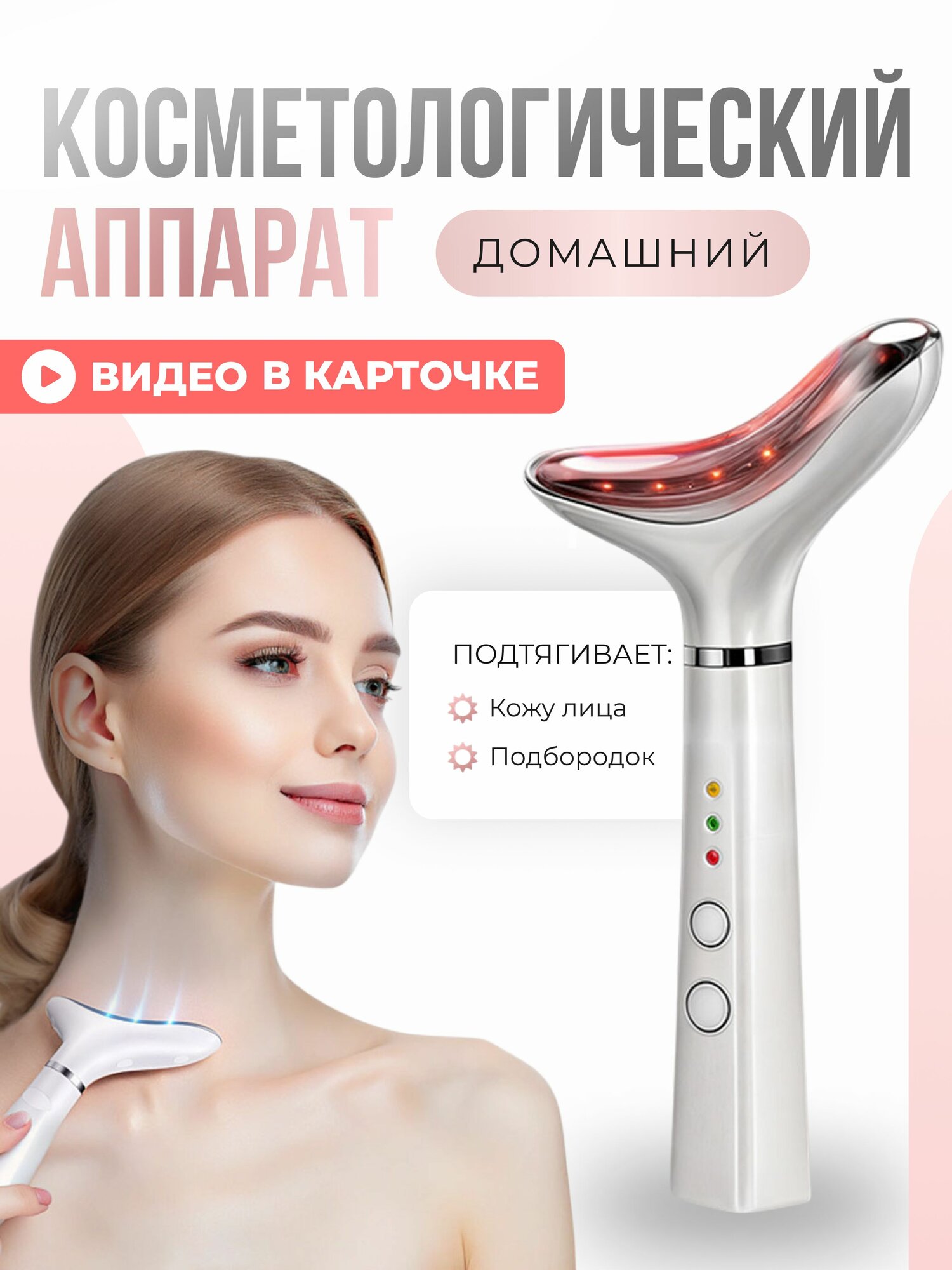 Косметологический аппарат для лица с RF лифтингом, прибор от второго подбородка, фотонная терапия и вибромассаж интересное: