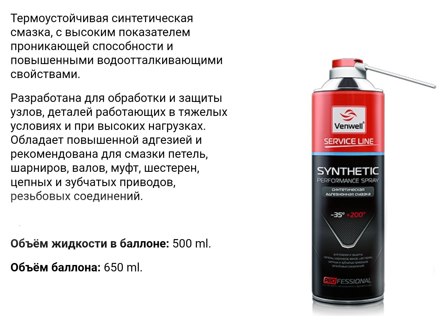 Смазка cпрей venwell synthetic performance spray адгезионная 500 мл vw-sl-019ru