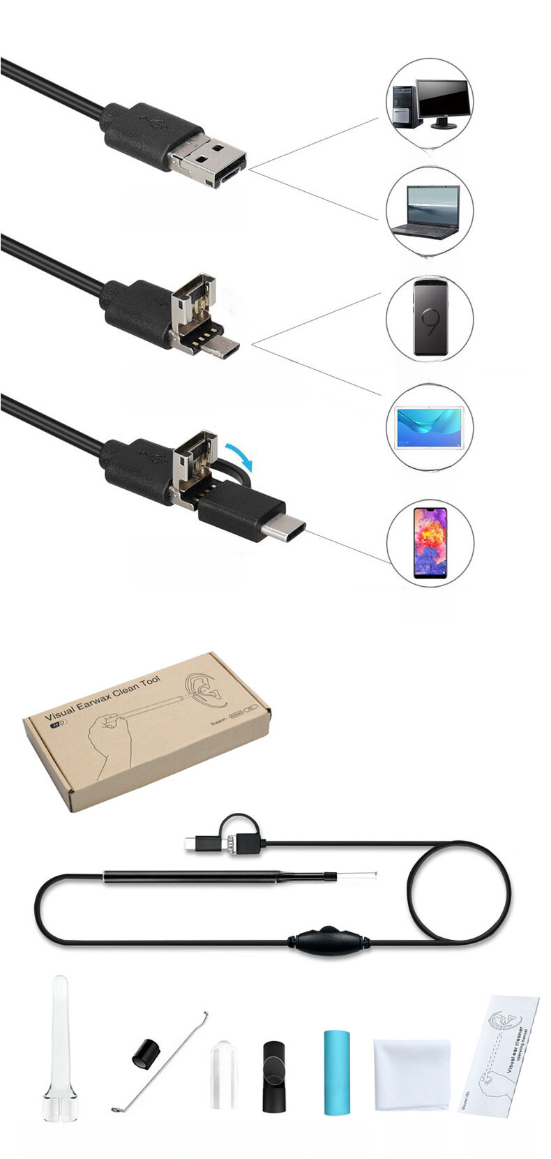 Визуальный отоскоп для ковыряния в ушах, металл, 5,5мм, 2м, 100шт интересное: