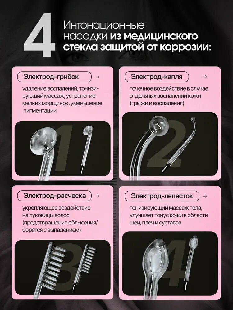 Дарсонваль "для лица, тела и волос", мощность 10 Вт, 4 стеклянные насадки, белый интересное: