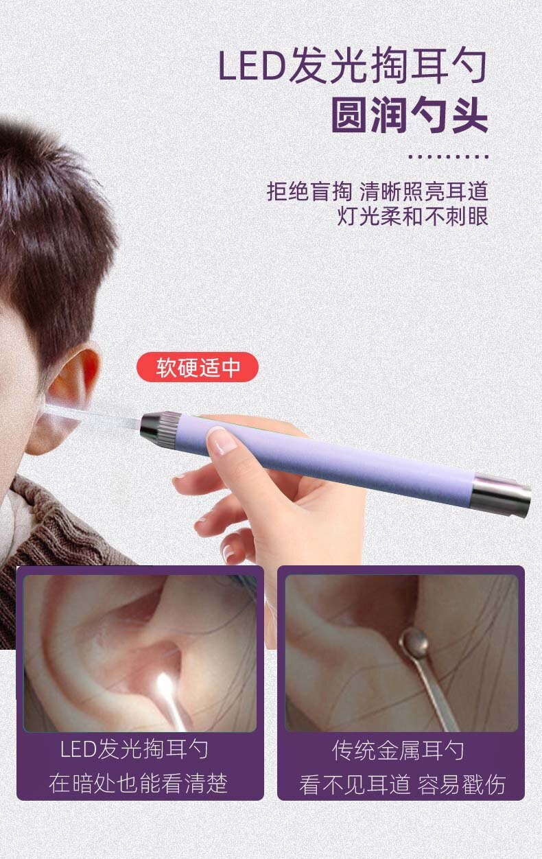 Купить Ушная щетка Haoyibei, для детей, светящаяся, фиолетовая, 2 шт