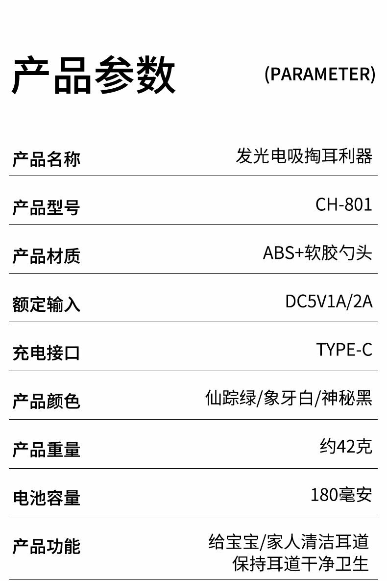 Ушная машинка CH-801, для взрослых и детей, с подсветкой, белая