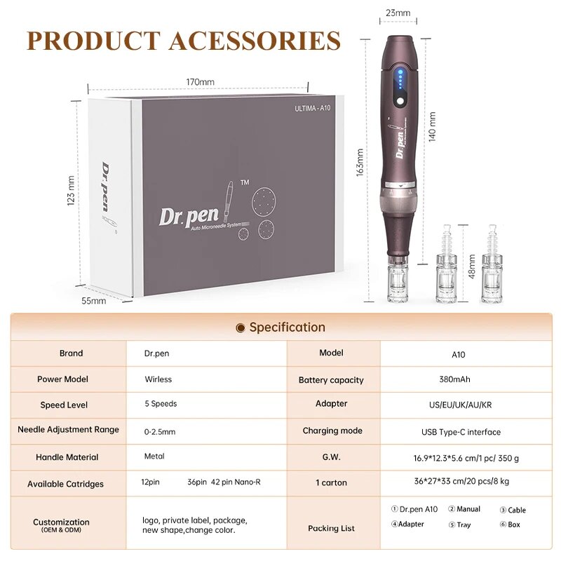 Dr.pen Ultima A10 для ухода за кожей, A10-EU Plug 36pin интересное: