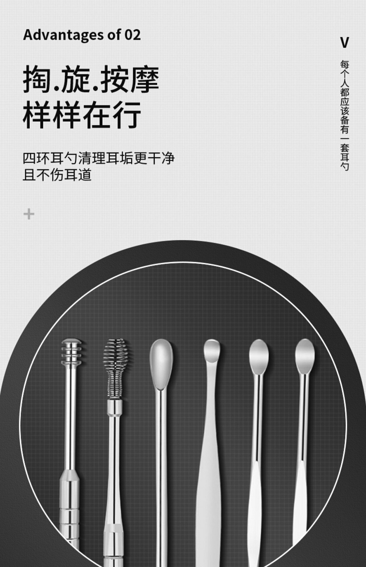 Набор ковырялок для ушей, нержавеющая сталь, 6 шт.