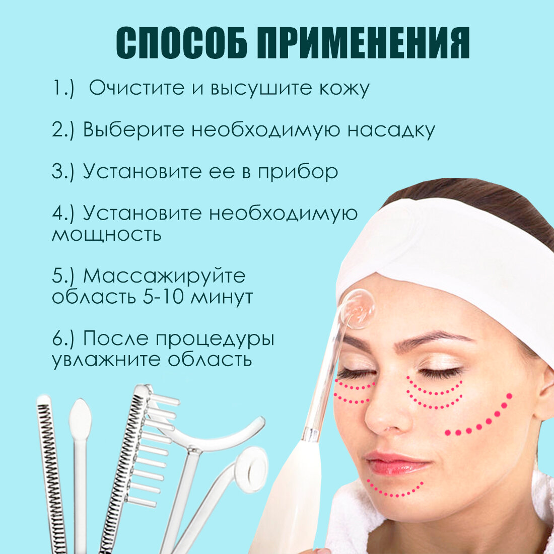 Купить Дарсонваль, для волос/тела/лица, 6 насадок, антивозрастной, массажный, для кожи головы