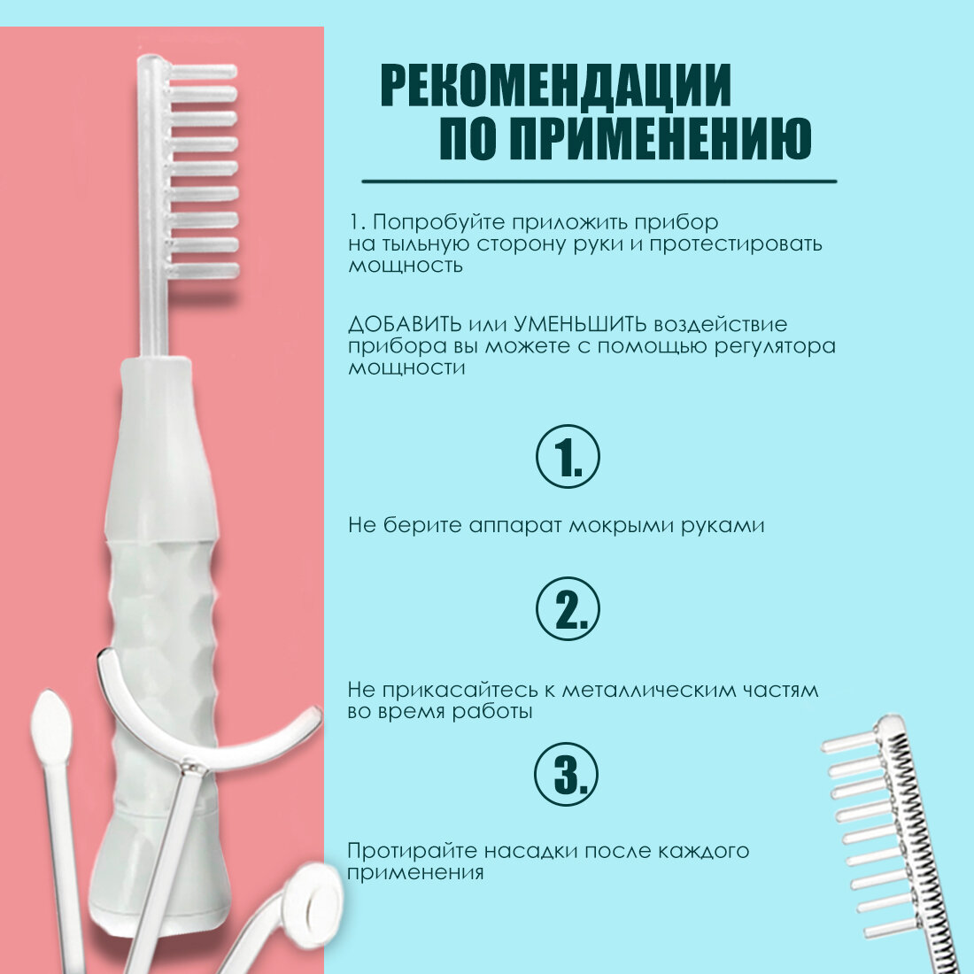 | Принцип работы | дарсонвализация / мезотерапия / микротоки |