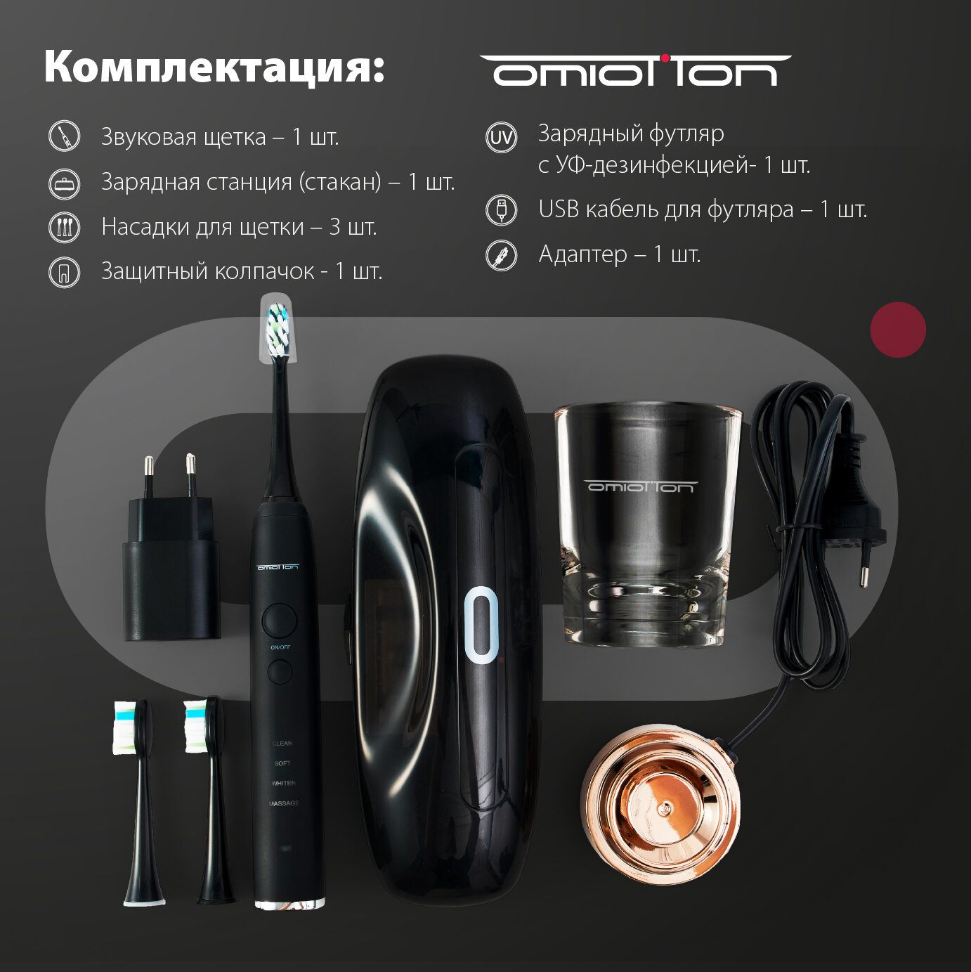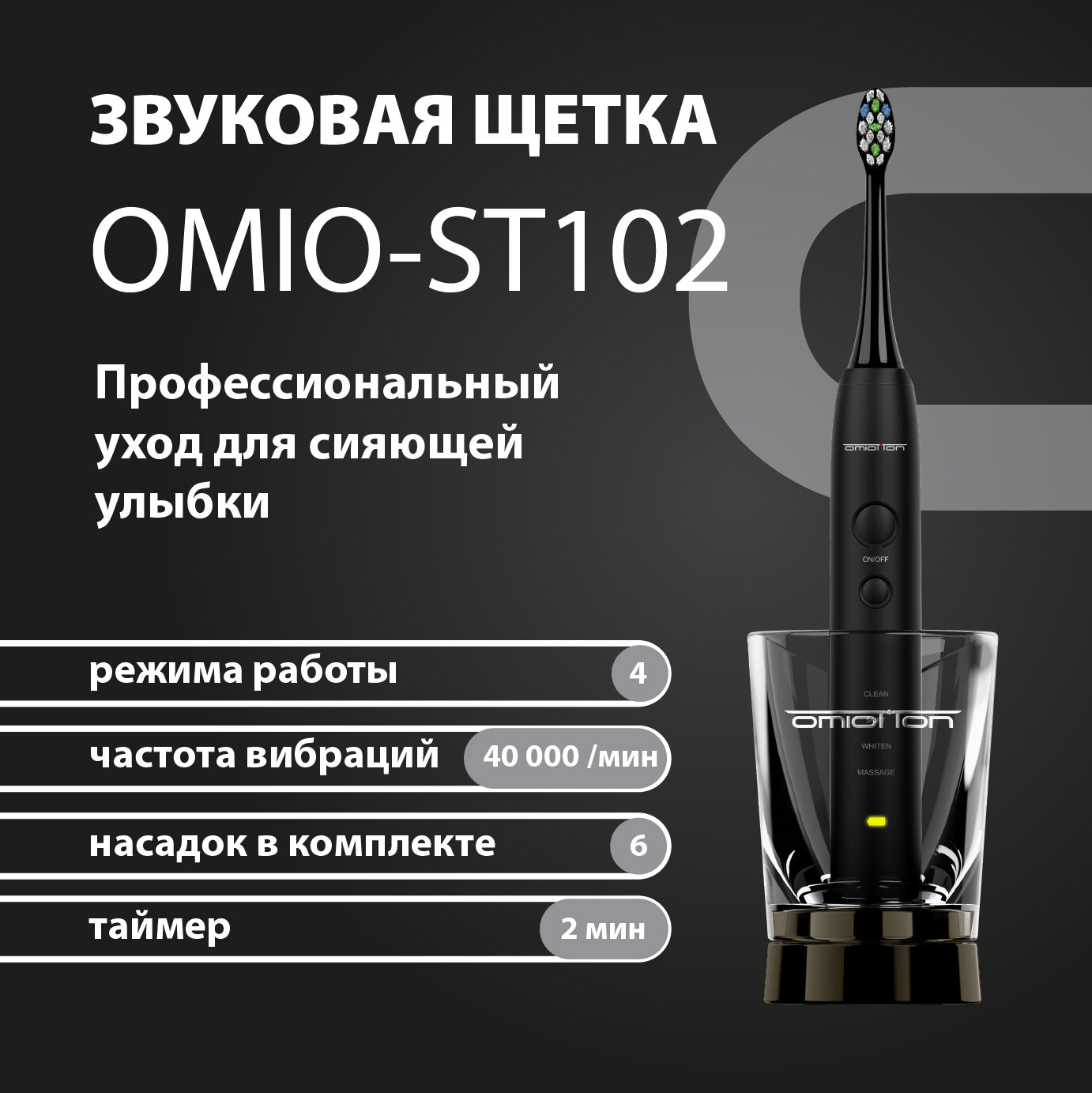 Электрическая звуковая щетка OMIOTTON OMIO-ST102, черная интересное: