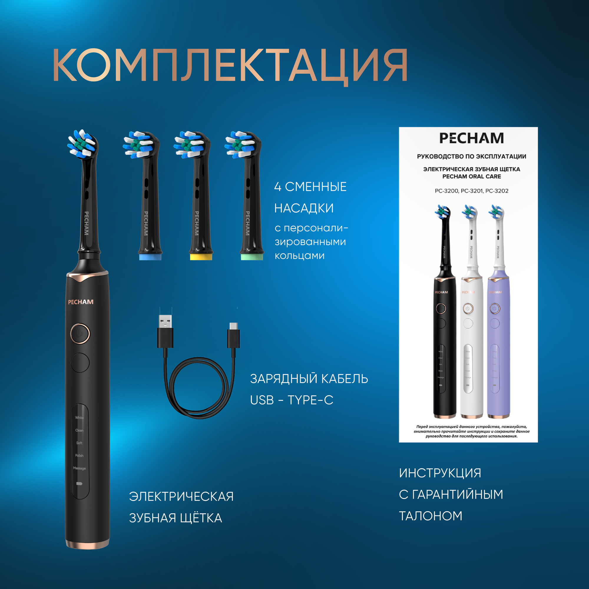 Электрическая зубная щётка PECHAM PC-3200 Oral Care, 5 режимов интересное: