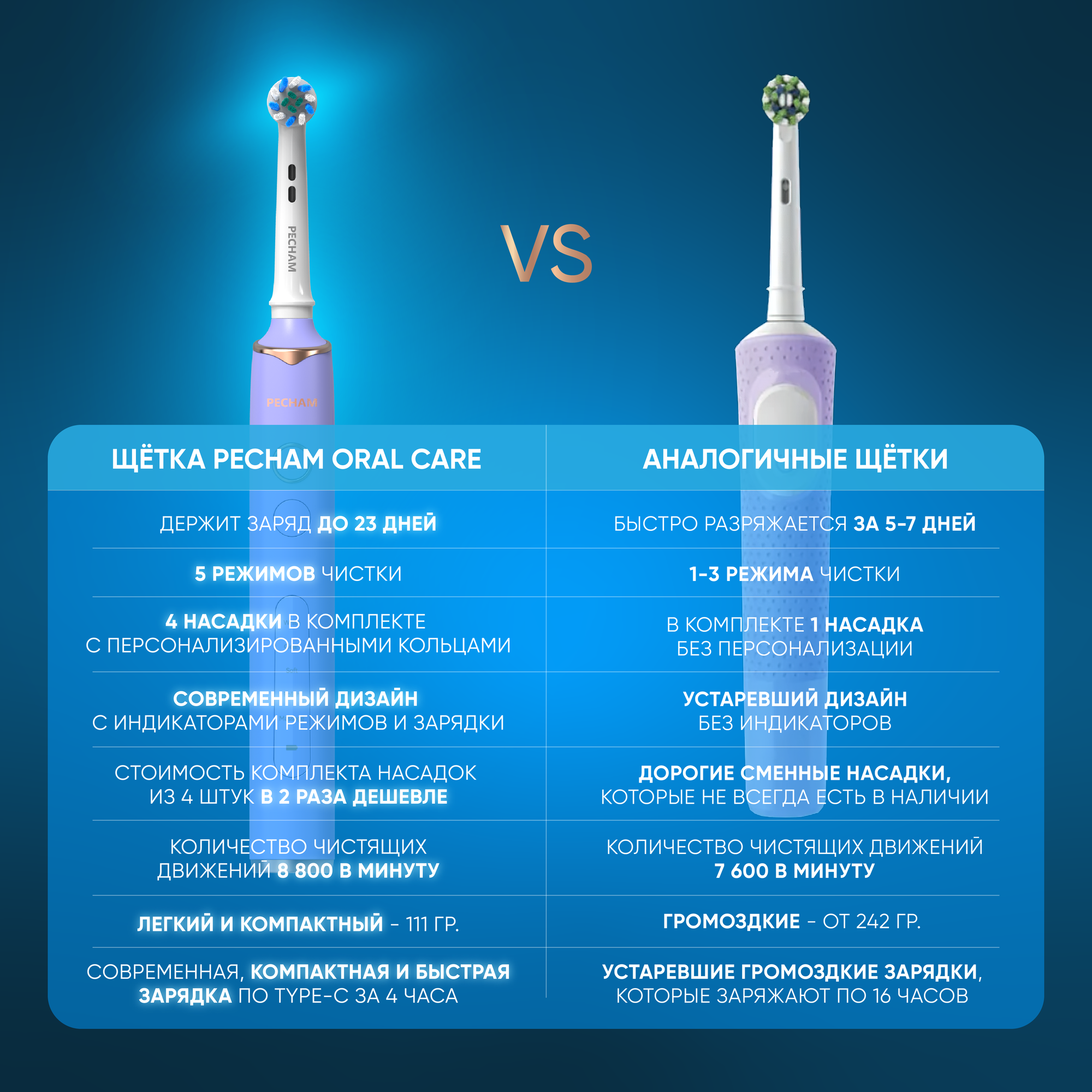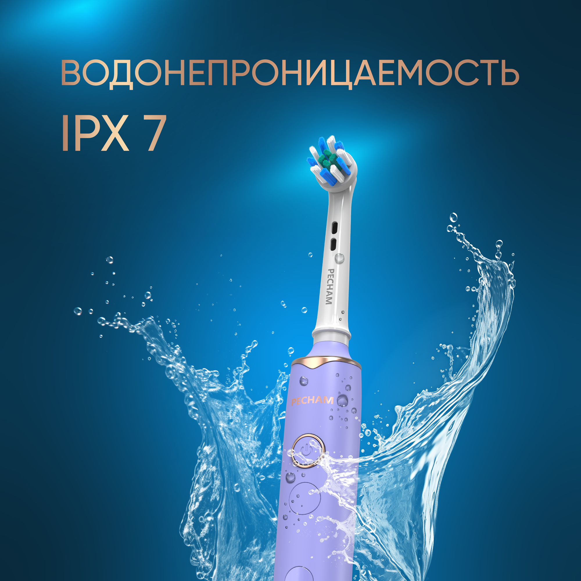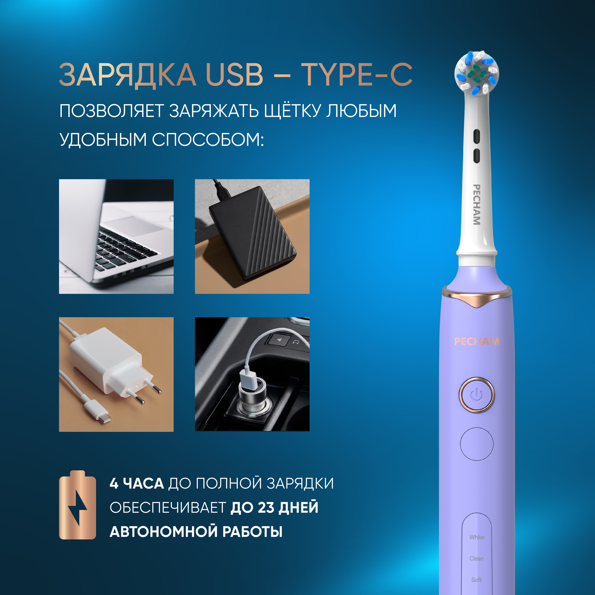 Зубная щетка PECHAM PC-3202 Oral Care, фиолетовая, 8800 пульсаций в минуту, 5 режимов интересное: