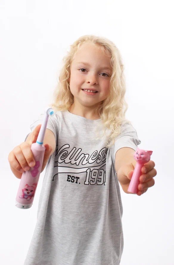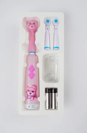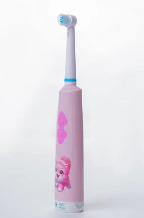 Детская электрическая зубная щетка, для детей, на батарейках, мягкая щетина, розовая