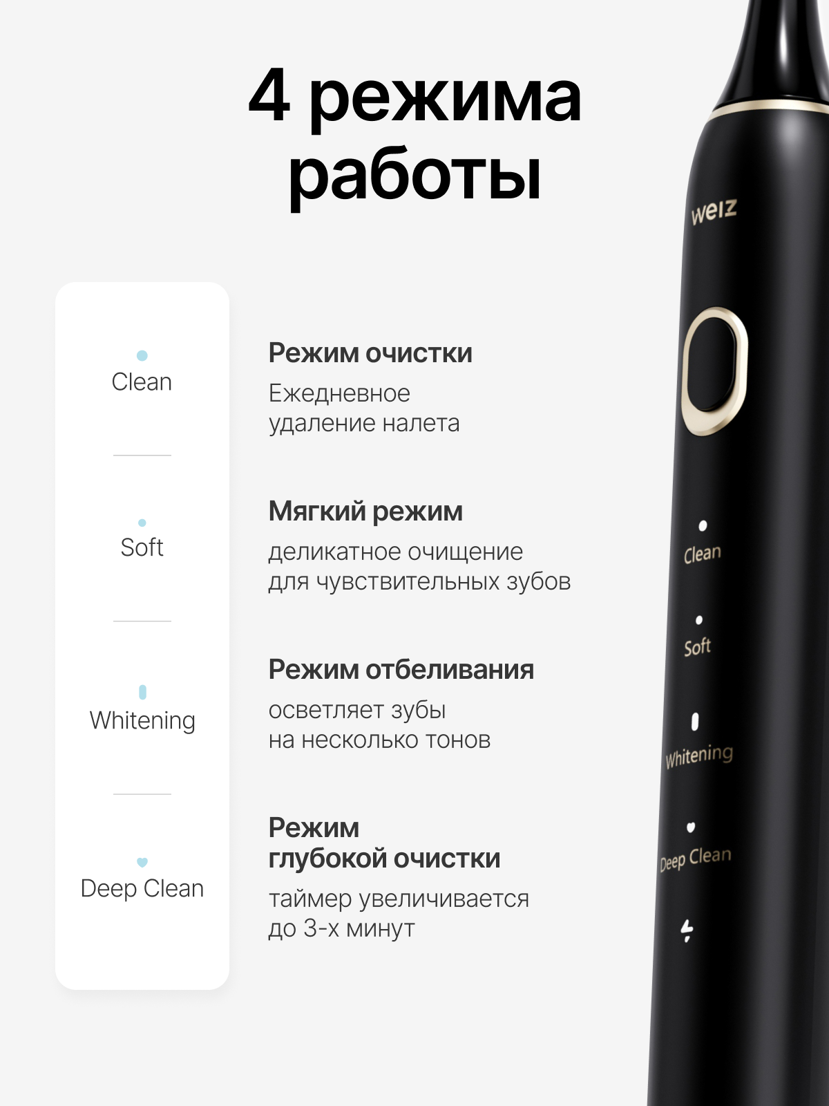 Электрическая звуковая зубная щетка Weiz Moon, IPX7, 4 режима, с футляром, черная интересное:
