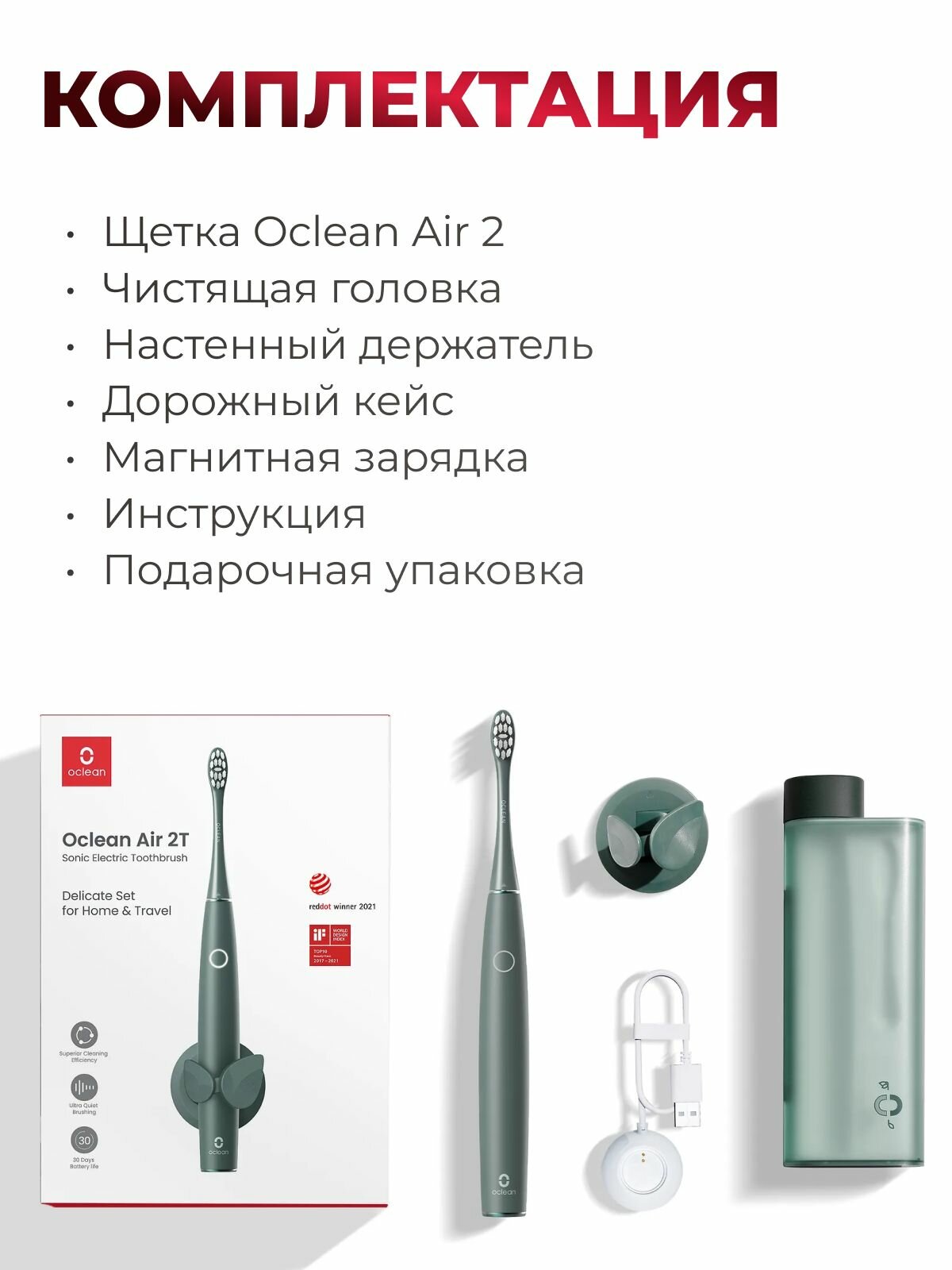 Электрическая ультразвуковая зубная щетка Oclean Air 2T Sonic Electric Toothbrush Green зеленая интересное: