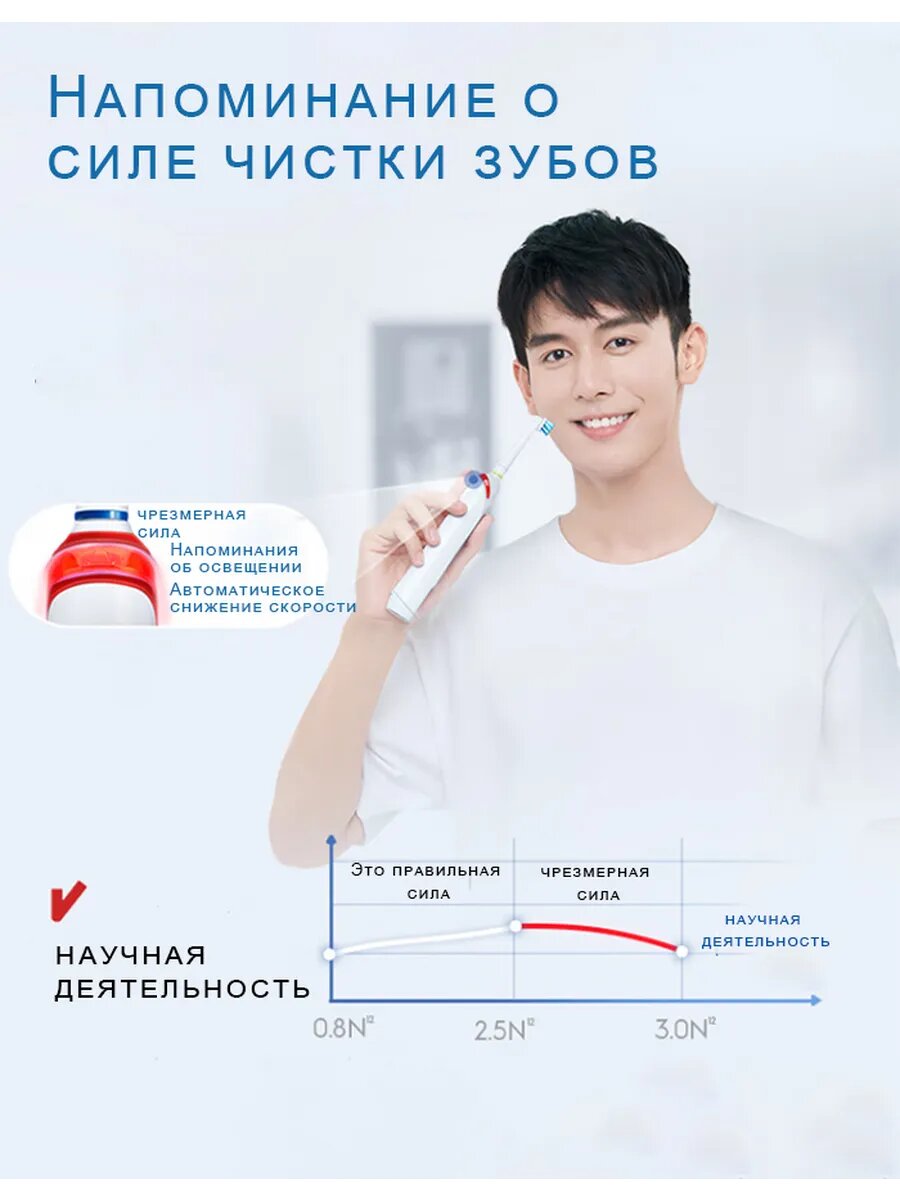 | Дополнительные функции | датчик нажима / таймер времени чистки / таймер смены области чистки |