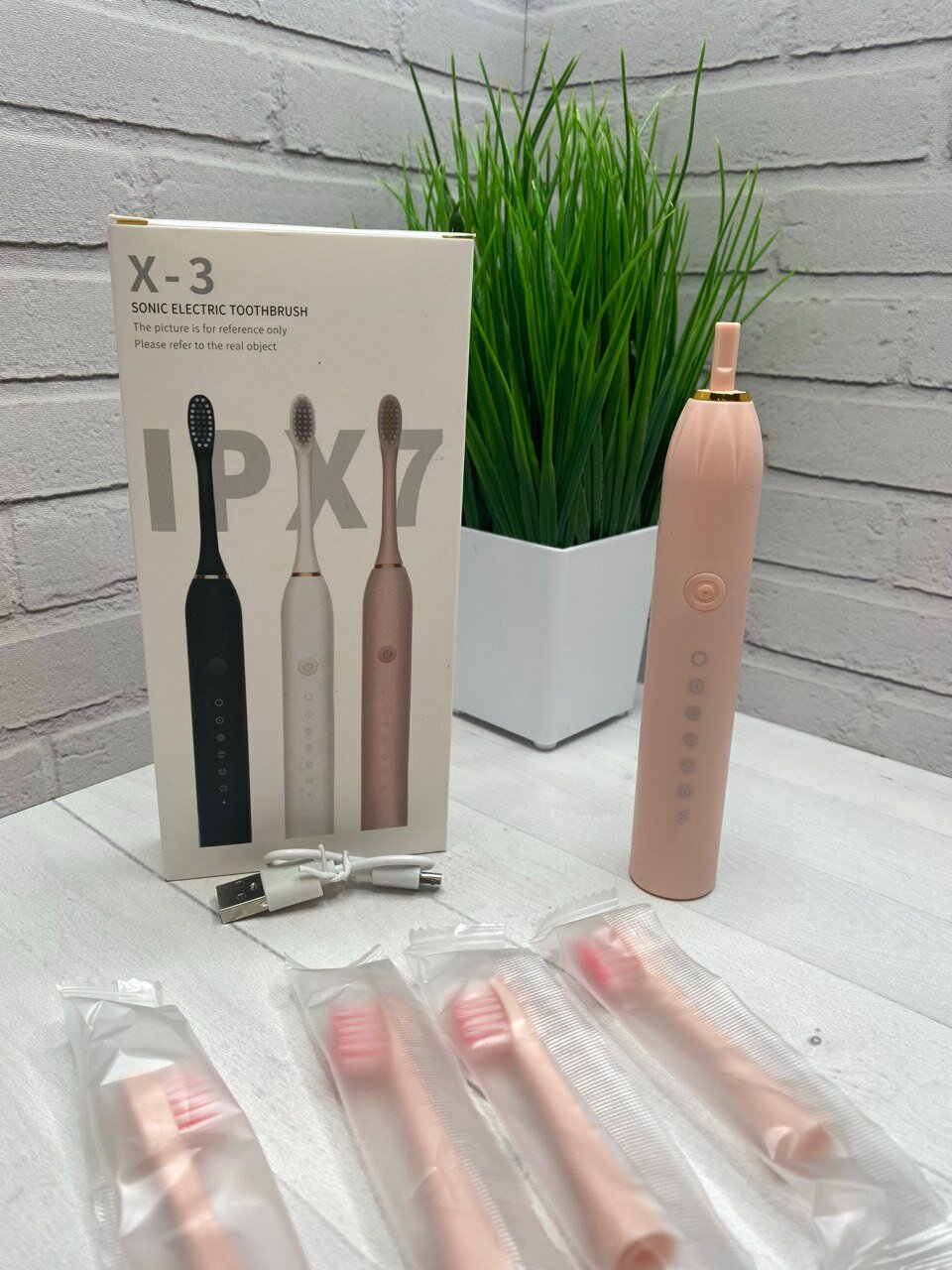 Купить Электрическая звуковая зубная щётка для всей семьи "X-3" с 4 насадками розовая