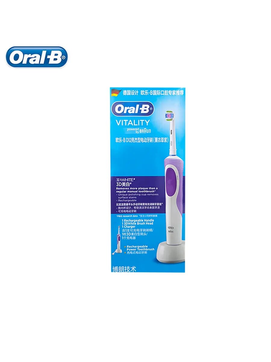 Купить Электрическая зубная щетка Oral-B D12, для взрослых, фиолетовая, 2 мин. таймер, 8 насадок