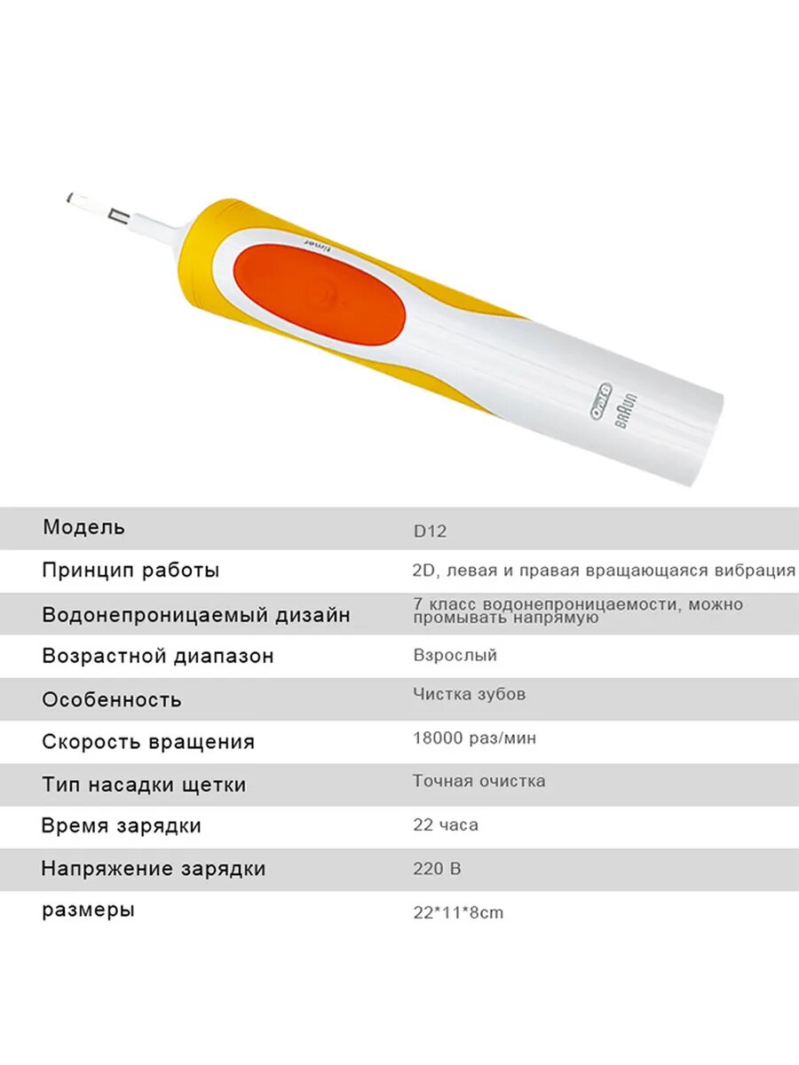 Электрическая зубная щетка Oral-B D12, для взрослых, водостойкая, с микроимпульсными щетинками, оранжевый