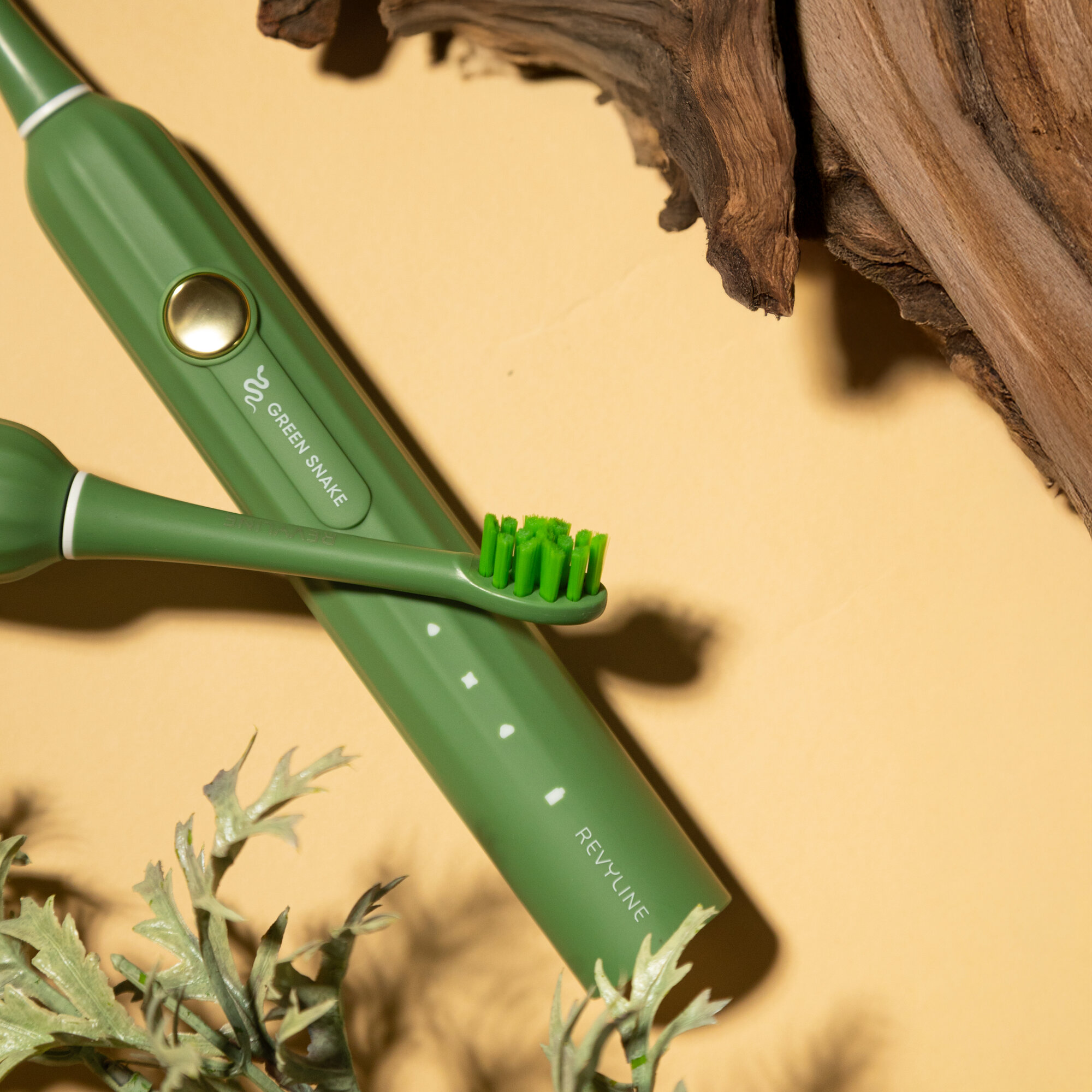 Купить Зубная щетка электрическая звуковая Revyline RL 075 Green Snake, зеленая, 5 режимов, 2 насадки