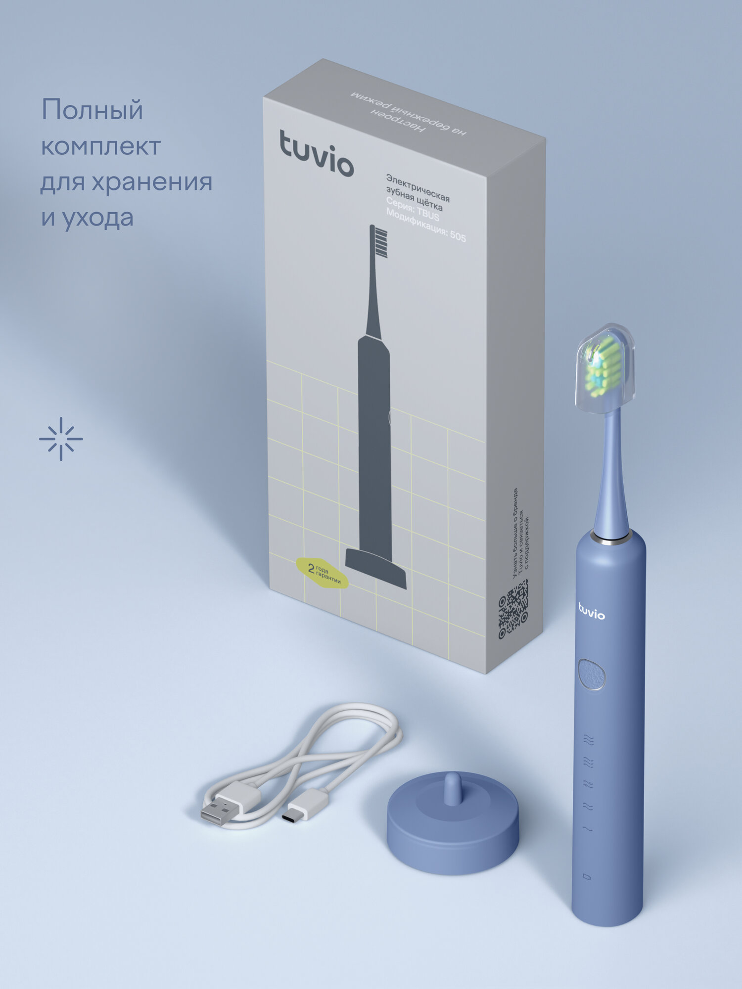 Ультразвуковая зубная щётка Tuvio TBUS-505, 5 режимов работы, синий интересное: