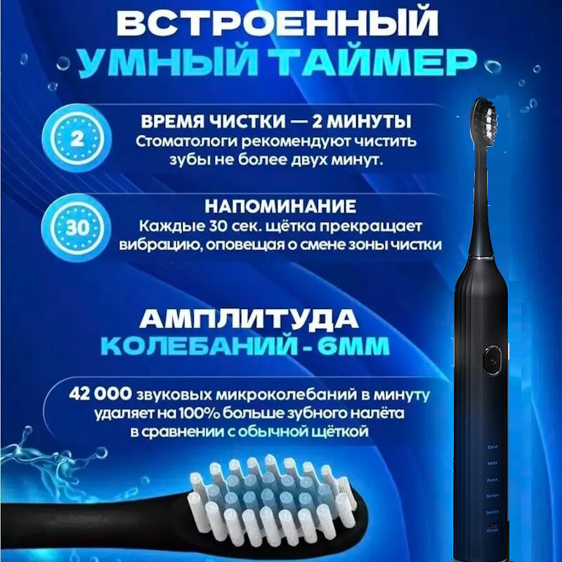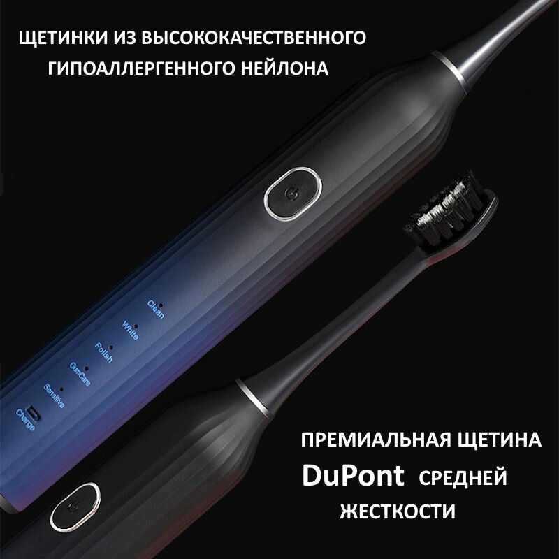 Электрическая зубная щетка, ультразвуковая, 5 режимов, 3 насадки, 120 дней без подзарядки интересное: