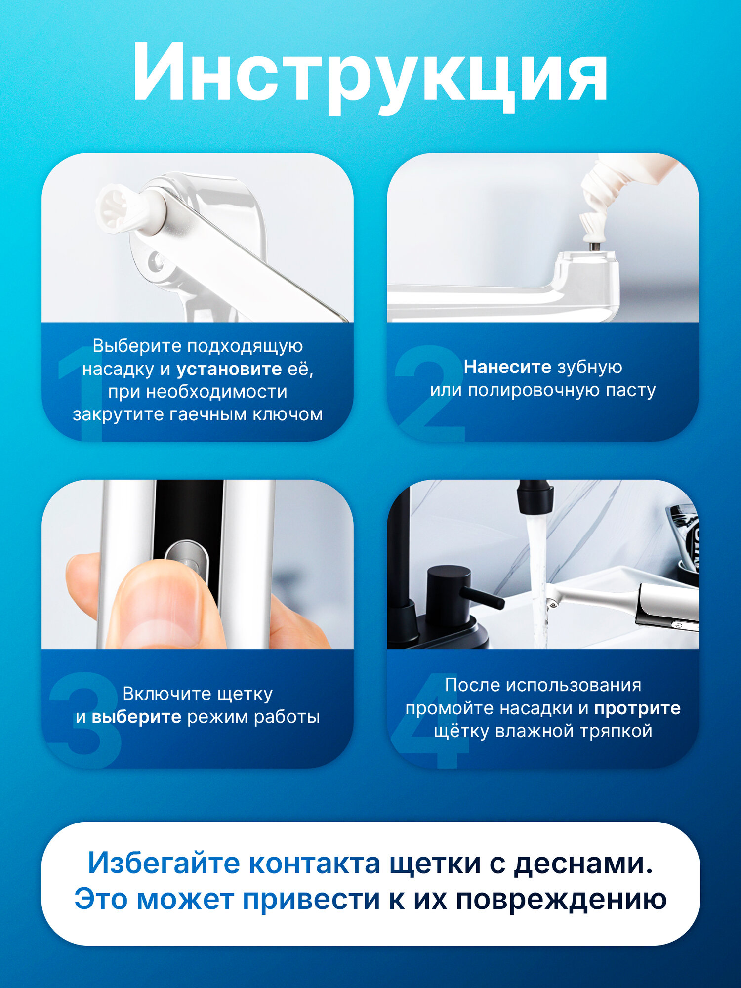 | Режимы работы | деликатная чистка / отбеливание / полировка |