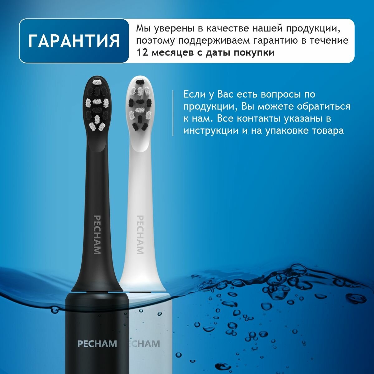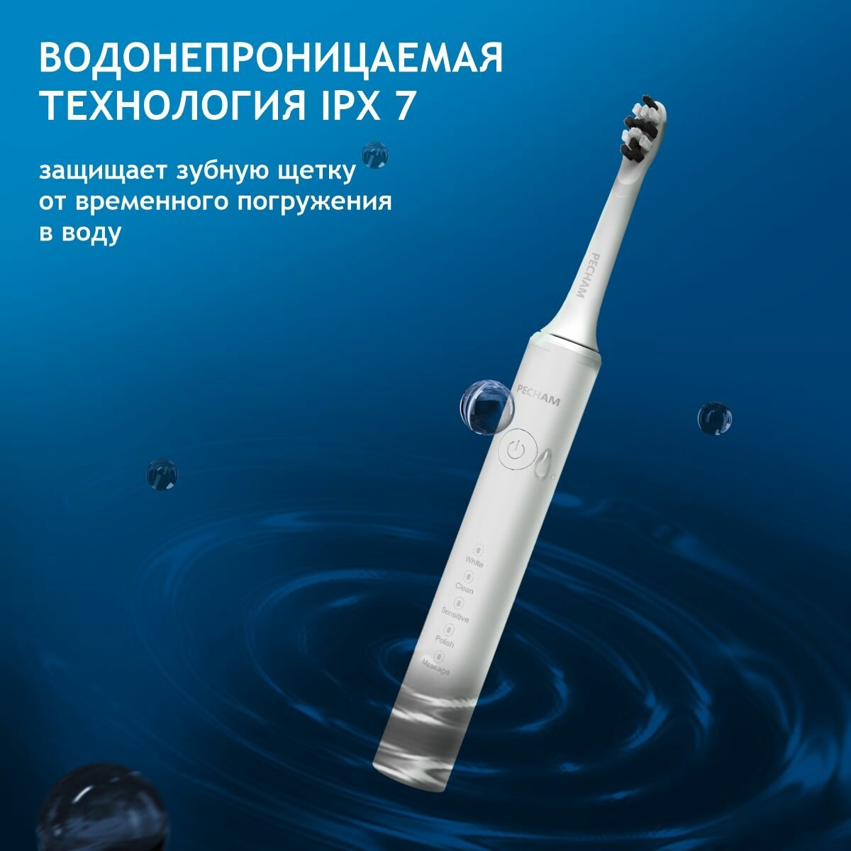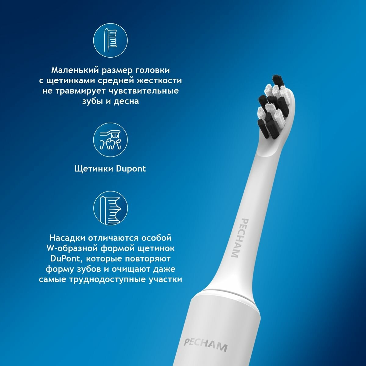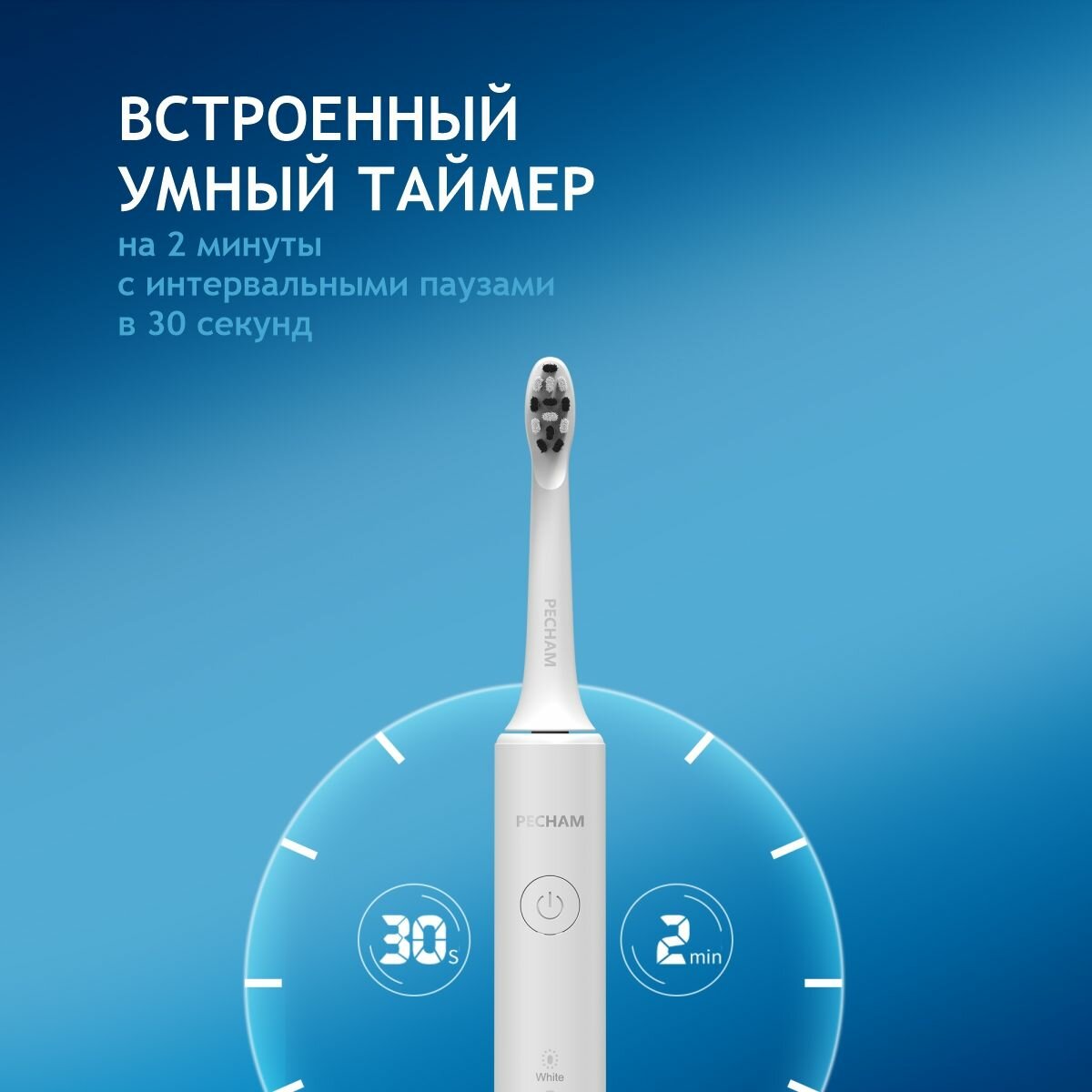 Зубная щетка PECHAM "Perfect Smile", звуковая, 40 тыс. движений в мин, белый интересное: