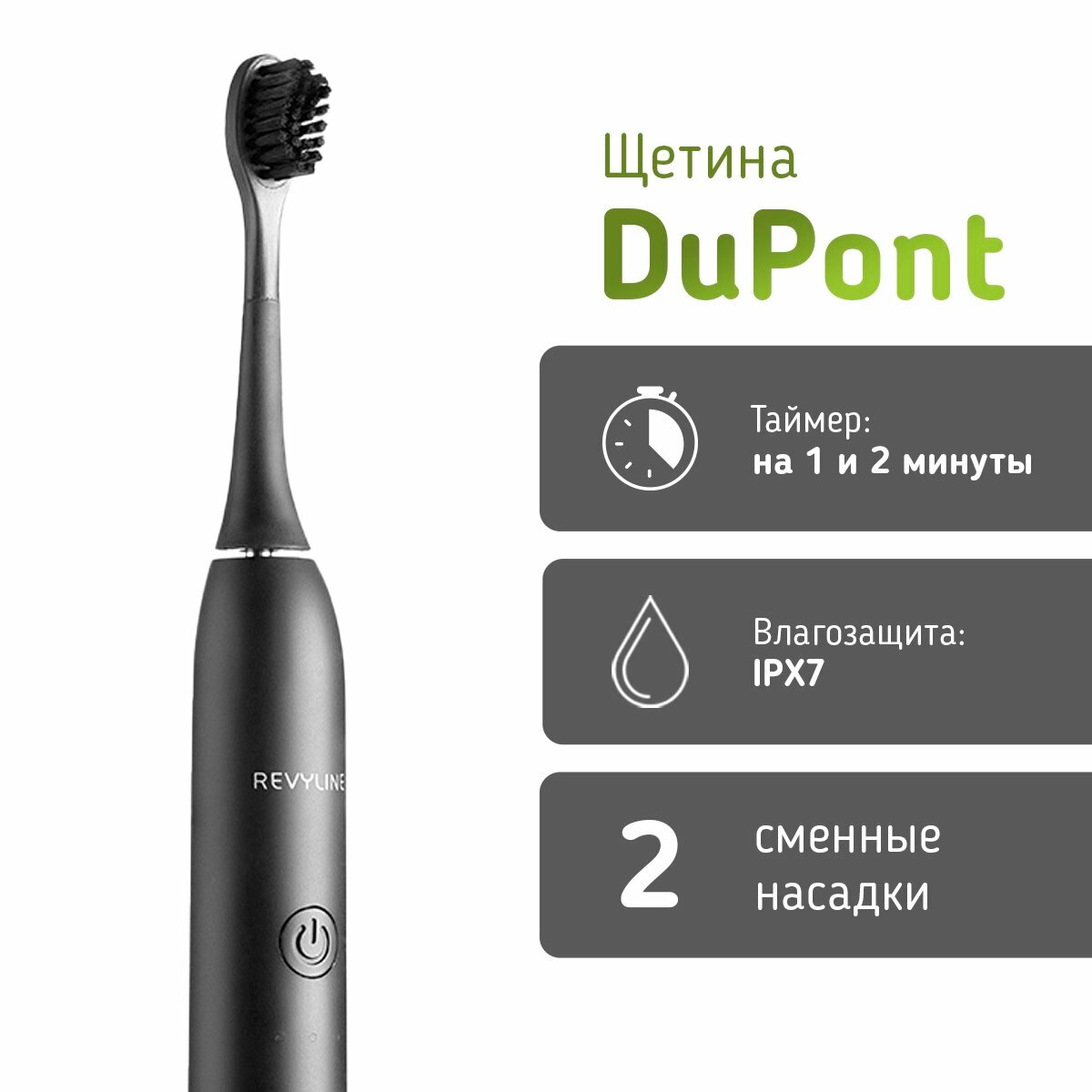 Электрическая звуковая зубная щетка Revyline RL 055 для детей, черная, 7+ интересное: