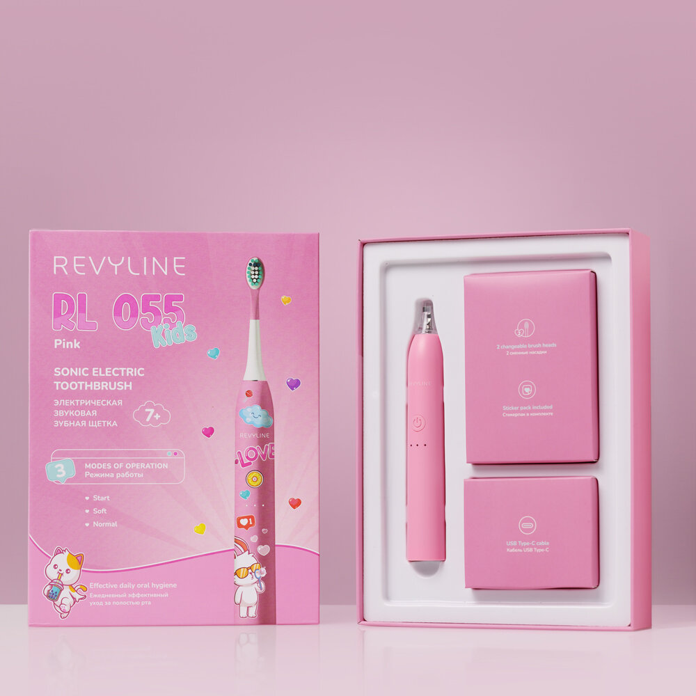 Электрическая звуковая зубная щетка Revyline RL 055 для детей, розовая, 7+ интересное: