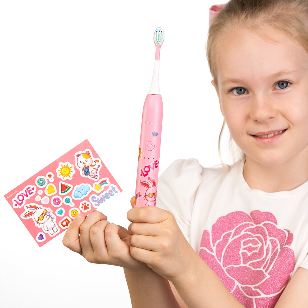 Купить Электрическая звуковая зубная щетка Revyline RL 055 для детей, розовая, 7+