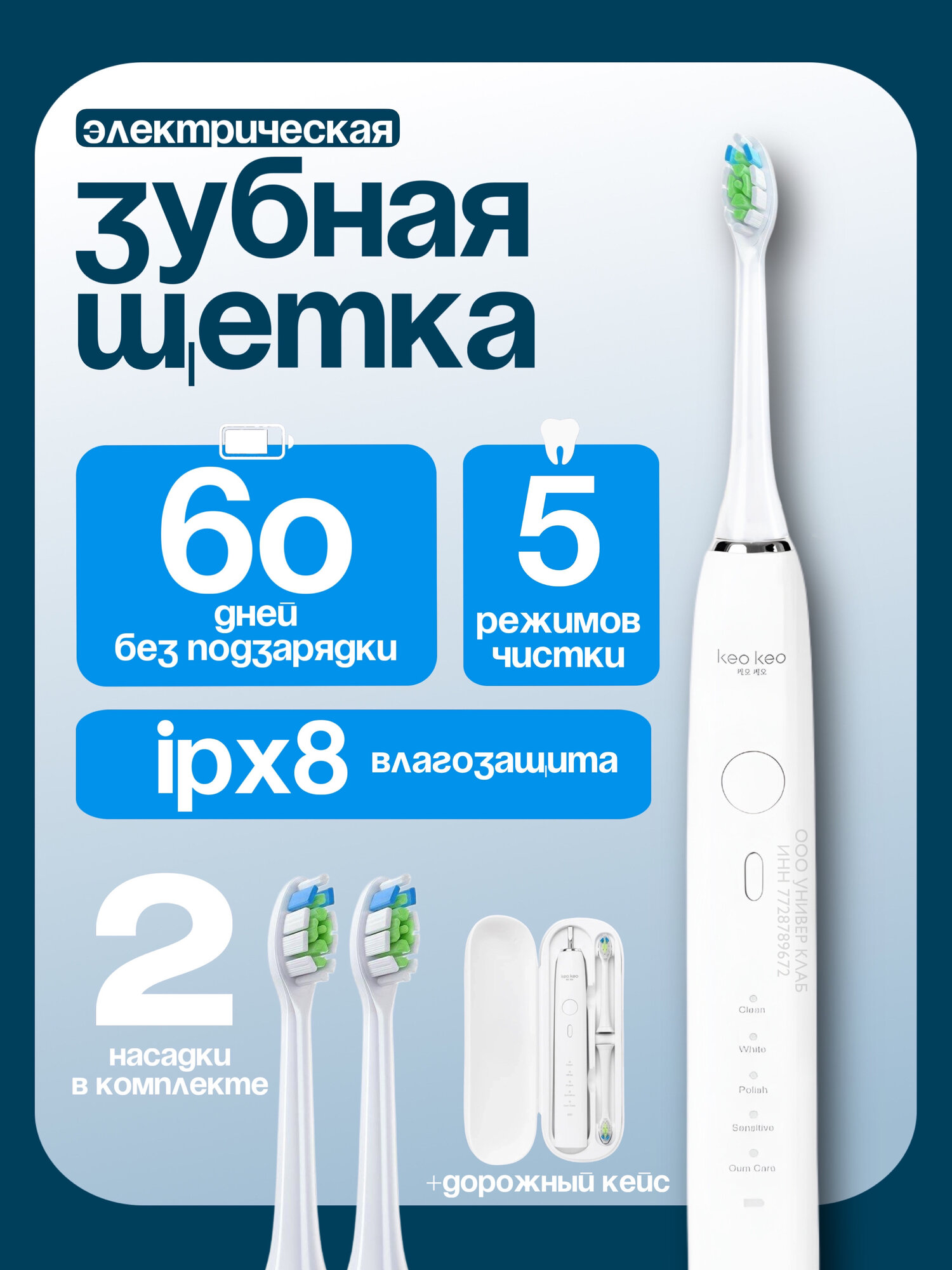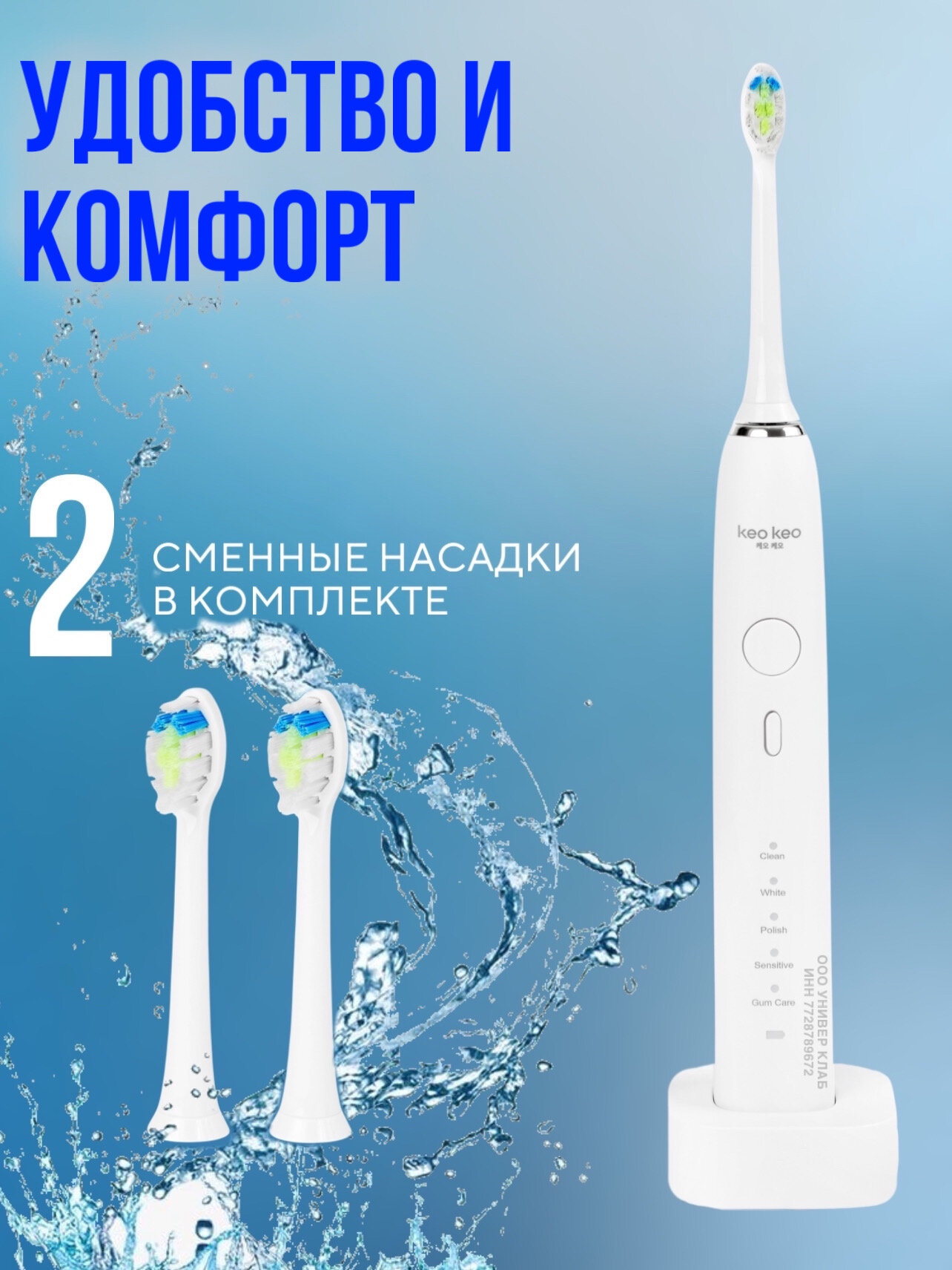 Электрическая зубная щетка Звуковая Keo Keo Richdent Easycare, белая 2 насадки, дорожный чехол, 5 режимов работы интересное: