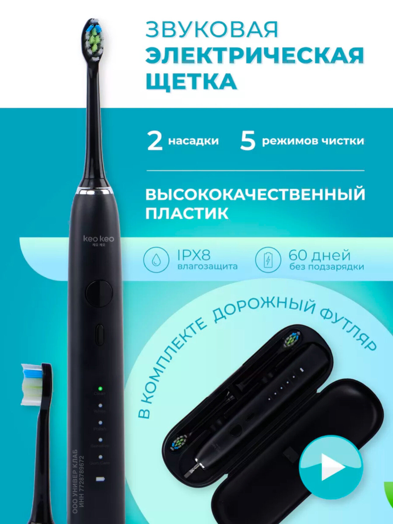 | Режимы работы | деликатная чистка / ежедневная чистка / массаж / отбеливание / полировка |