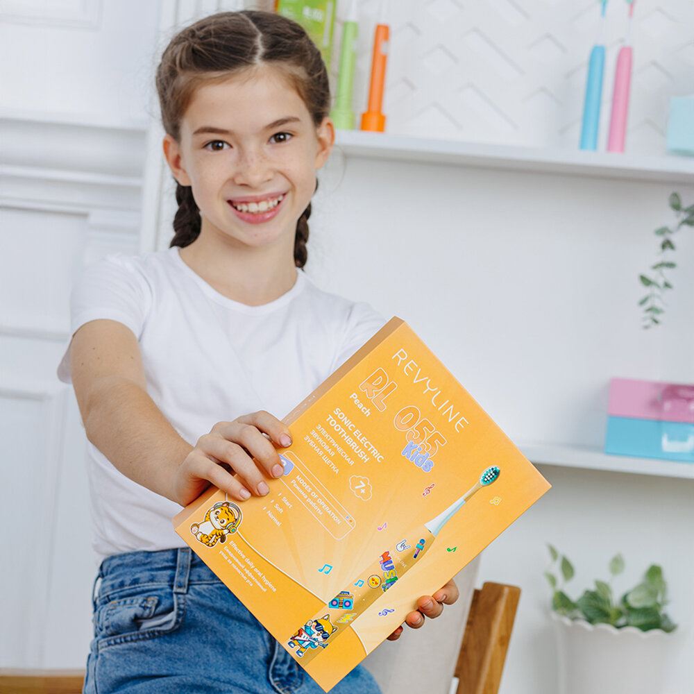 Электрическая детская звуковая зубная щетка Revyline RL 055, оранжевая, 7+ интересное: