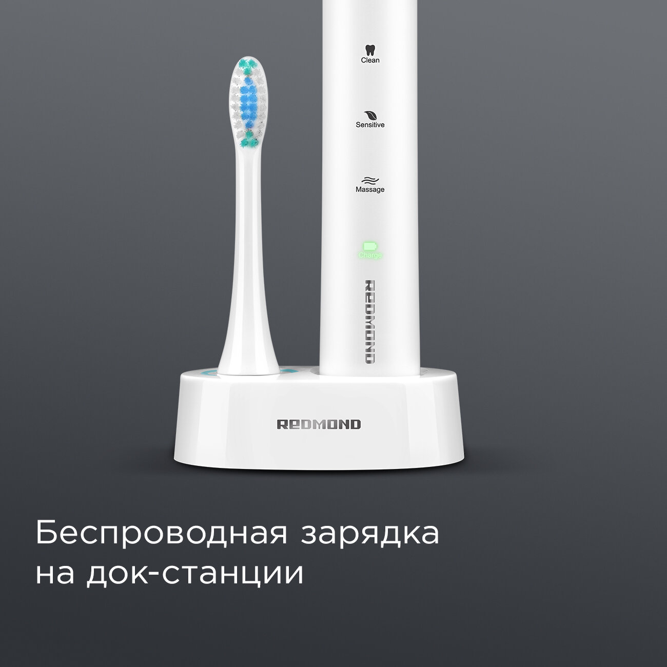 Электрическая зубная щетка РЕДМОНД TB4601 (серый), большой объем аккумулятора 800 мА*ч